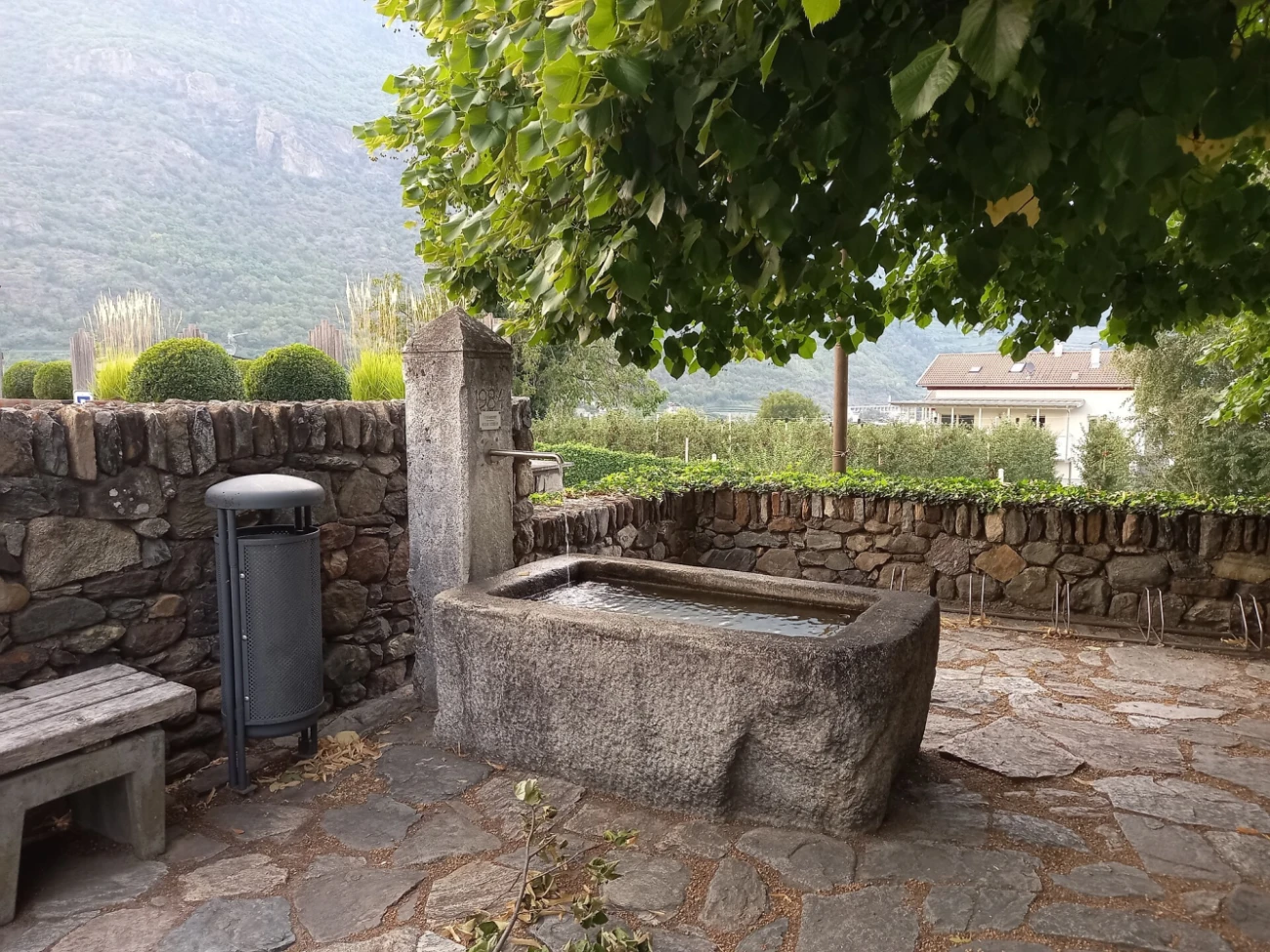 Die Trinkwasser – Auffüllstation befindet sich am Dorfplatz in Tschirland, vis a vis vom Restaurant Tschirlanderhof.