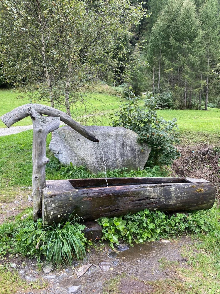 Der Trinkbrunnen befindet sich im Dorfzentrum von Rein in Taufers.