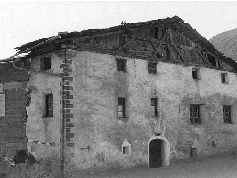 Die Ursprünge dieses ausgedehnten Wohnhauses mit Wirtschaftstrakt reichen sicherlich in das ausgehende Mittelalter zurück. Freilich haben die diversen An- Um- Auf- und Zubauten den einstigen Charakter des ehemaligen Baukörpers arg zugesetzt, wobei sich aber insbesondere im Kellergeschoss ursprüngliche Bausubstanz erhalten hat. Am Zubau finden sich hingegen noch Wandmalereien wie z. B. eine Sonnenuhr und ein „Andreaskreuz“ mit der Jahreszahl 1734. Ebenso vielfältig wie dieses Anwesen selbst, waren zumindest ab dem urkundlich erfassbaren Zeitraum des 17. Jahrhunderts auch seine Bewohner. So besaßen um 1775 Simon Ebensperger, Walpurga Ortler, Maria Haid und Johannes Platzer dieses zinsfreie Eigentum an Wohn- und Ökonomiegebäude am Unteren–Platz. Die vier Parteien teilten sich die im Haus befindlichen vier Stuben, drei Küchen, acht Kammern und drei Keller zu gleichen Teilen. Zum Hauseigentum zählte auch der südseitig angrenzende Krautgarten in einer Größe von 62 Klafter (223 m²). Der Steuerkataster von 1814 offenbart uns, dass inzwischen Anton Ebensperger Inhaber einer ganzen Gebäudehälfte geworden war, während sich aber weitere vier Parteien mit der zweite Hälfte begnügen mussten. Diese Notstand Situation war im Prad des 19. Jahrhunderts allgegenwärtig und führte schließlich unter anderem zur dutzendweisen Auswanderung nach Amerika. Das geschichtsträchtige Haus wurde im vorigen Jahrhundert am 31. Oktober 1929 zum Geburtsort des vielbeachteten Künstlers Hans Ebensperger, worüber sich nähere Hinweise im Prader Dorfbuch von 1997 finden. Zu den diversen Bewohnern der geteilten „Ebensperger-Anteile“ zählte unter anderen auch Frau Helga Ebner/Ebensperger, sie unterhielt als Fotografin von 1971 bis 1998 im Kellerbereich ein Fotostudio mit Fotoladen. Im selben Zeitraum wurden sowohl die Außenfassaden als auch der Innenbereich vom Besitzer und Maurermeister Albrecht Ebensperger einer Totalsanierung unterzogen, sodass sich uns das Gebäude, mit Ausnahme der gleich gebliebenen Fensterreihung, heute völlig anders präsentiert.