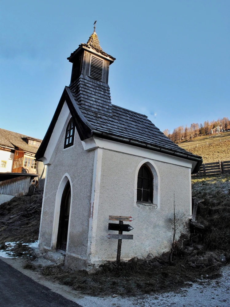 Kleine Kapelle mit Aussicht auf die Sextner Dolomiten