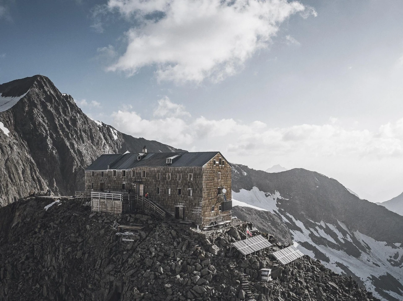 Südtirols höchstgelegene Schutzhütte liegt auf der südlichen Seite der Stubaier Alpen auf einer Höhe von 3.195 m. Das Becherhaus wurde 1894 vom Deutschen und Österreichischen Alpenverein errichtet, erhielt nachher aber mehrere Umbauten und Renovierungen. Die letzten Umbauarbeiten auf der höchsten Baustelle Südtirols konnten im Sommer 2021 nach rund einem Jahr Arbeit fertiggestellt werden. Der ursprüngliche Bau dauerte vom März bis August 1894. Hierfür wurden 25 Tonnen Material aus Maiern bis zum Gipfel gebracht. Noch im selben Jahr wurde die Hütte unter dem Namen „Kaiserin-Elisabeth-Schutzhaus“ eröffnet. Einige Jahre später wurde der Namen dann geändert. Auch die Kapelle "Maria im Schnee" wurde angefertigt, welche noch heute zu besichtigen ist.