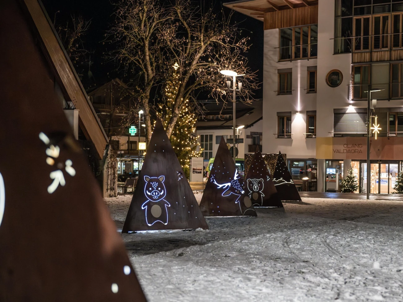 Die Landschaft liegt eingebettet in einem märchenhaften Weiß: tiefer Schnee lässt die schroffen Gipfel und Felsen der Dolomiten sanft und weich erscheinen, Wälder und Wiesen an deren Hängen und im Tal liegen unter einer tiefen Schneedecke. Nach Einbruch der Dämmerung legt sich Stille über die Landschaft und die Sterne funkeln am Horizont. Weihnachtliche Lichter erhellen die Straßen, in den Holzobjekten der Ausstellung „holzART“ erscheinen funkelnde Sterne, leuchtende Engel und glühende Herzen in sanftem Schein und auch der Park von Mitterolang erstrahlt in einem ganz besonders stimmungsvollen Licht: Willkommen im Lichterzoo.
