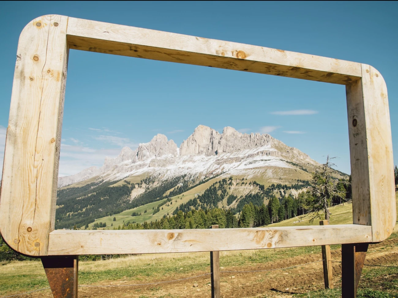 Vom Karer Pass aus gelangt man nach einer halbstündigen leichten Wanderung auf dem Weg [17] zum Bergkino Latemarwiesen.