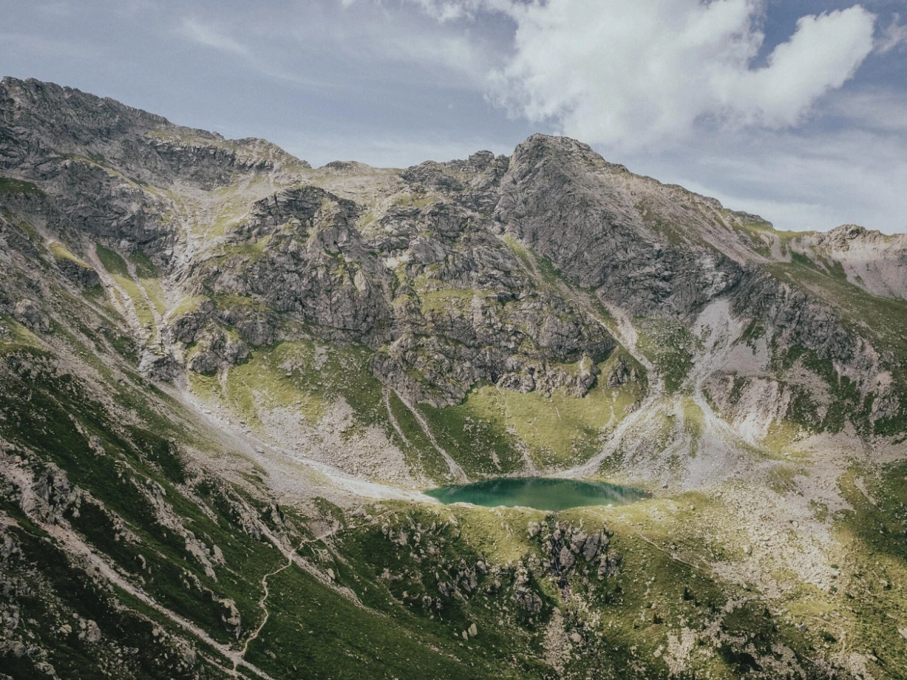 Von der Bergstation Meran 2000 aus wandert man zunächst zum Missensteinjoch und dann über den E5 zum Kratzbergersee (für geübte Geher).