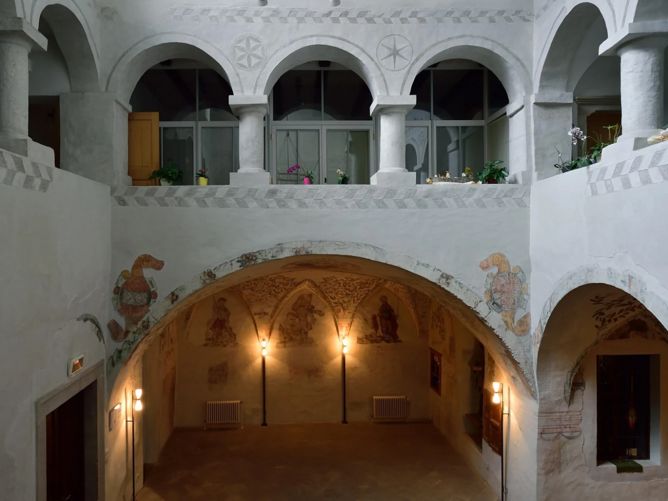 Das Haus mit der Nr. 17 der Laubengasse ist ein Gebäude von großem historischem und künstlerischem Interesse, dessen lange Restaurierung es erlaubte, die Bau- und Ausschmückungsphase zu rekonstruieren. Die erste Bauphase reicht bis ans Ende des 15. Jahrhunderts zurück. Davon lassen sich noch die drei Spitzbogengewölbe der Vorhalle sowie Profile spätgotischer Fenster auf der Fassade erkennen, die später vermauert und ersetzt worden sind. In der ersten Hälfte des 16. Jahrhunderts entstand die bemalte Decke des großen Mittelsaales, der als einer der schönsten der ganzen Region angesehen wird. Er befindet sich zwischen dem Atrium und dem hinteren Hof, misst 17 x 6 Meter und erhält durch zwei spätgotische Dreifachbogenfenster Licht. In die Balkendecke mit gemalten Friesen sind Holztafeln eingesetzt, wovon die meisten noch original sind. Sie stellen allegorische Motive, männliche und weibliche Büsten sowie Wappen adeliger und bürgerlicher Familien - darunter jenes der Besitzer Öler-Terzago - und schließlich jenes von Neumarkt und der Reichsstadt Augsburg dar. In der Mitte des 16. Jahrhunderts wurde das Atrium im Baustil der Renaissance vollendet. Drei Seiten des 2. Stocks sind durch eine Loge mit Rundbogen und durch Sgraffito Technik gekennzeichnet. Vom Ende des 16. Jahrhunderts stammt die reiche Ausschmückung des Atriums im ersten Stock, während die Fresken der Fassade aus dem 17. Jahrhundert stammen. Das Gebäude wurde 1889 von der Gemeinde erworben und im Jahre 1978 der Pfarrei geschenkt. Heute ist es Sitz des Pfarrzentrums Neumarkt.