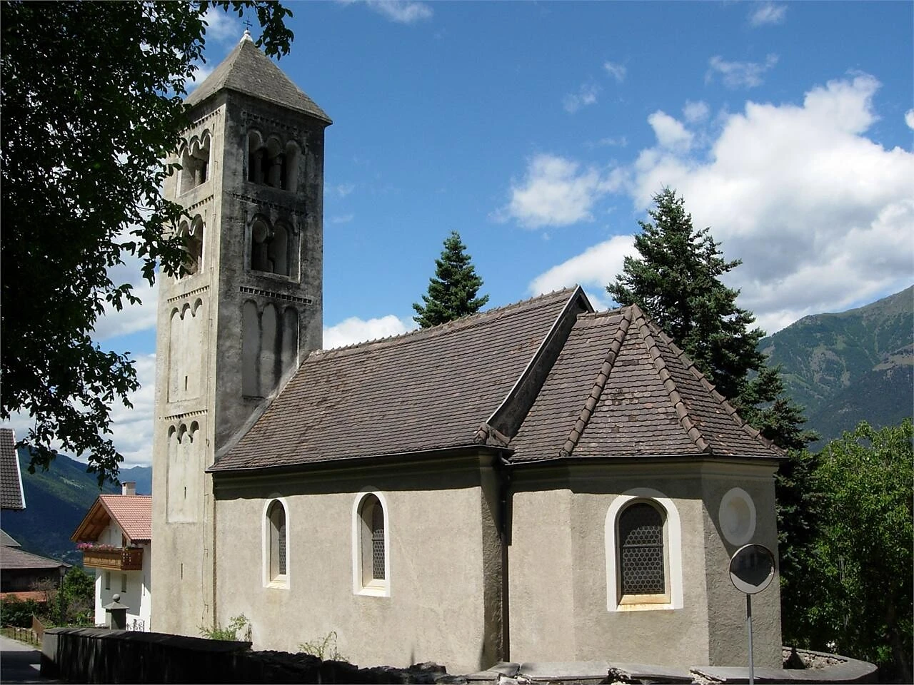 Die St. Karpophorus Kirche in Tarsch ging im Jahr 1212/1214 als Schenkung von Kaiser Friedrich in den Besitz des Deutschen Ritterordens über. Im Zuge archäologischer Grabungen wurden die Reste von zwei Vorgängerbauten gefunden. Der Turm der Kirche, der von späteren Umbaumaßnahmen verschont blieb, gehört wohl zu den schönsten aller gegliederten romanischen Türme im Vinschgau. Die Kirche ist Teil des Projektes „Stiegen zum Himmel“.