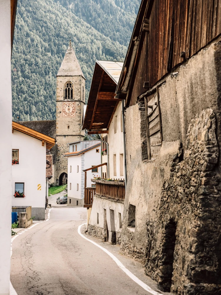 In fahrtrichtung Taufers auf der Laatscher Straße befindet sich am Ende des Dorfes die Kirche.