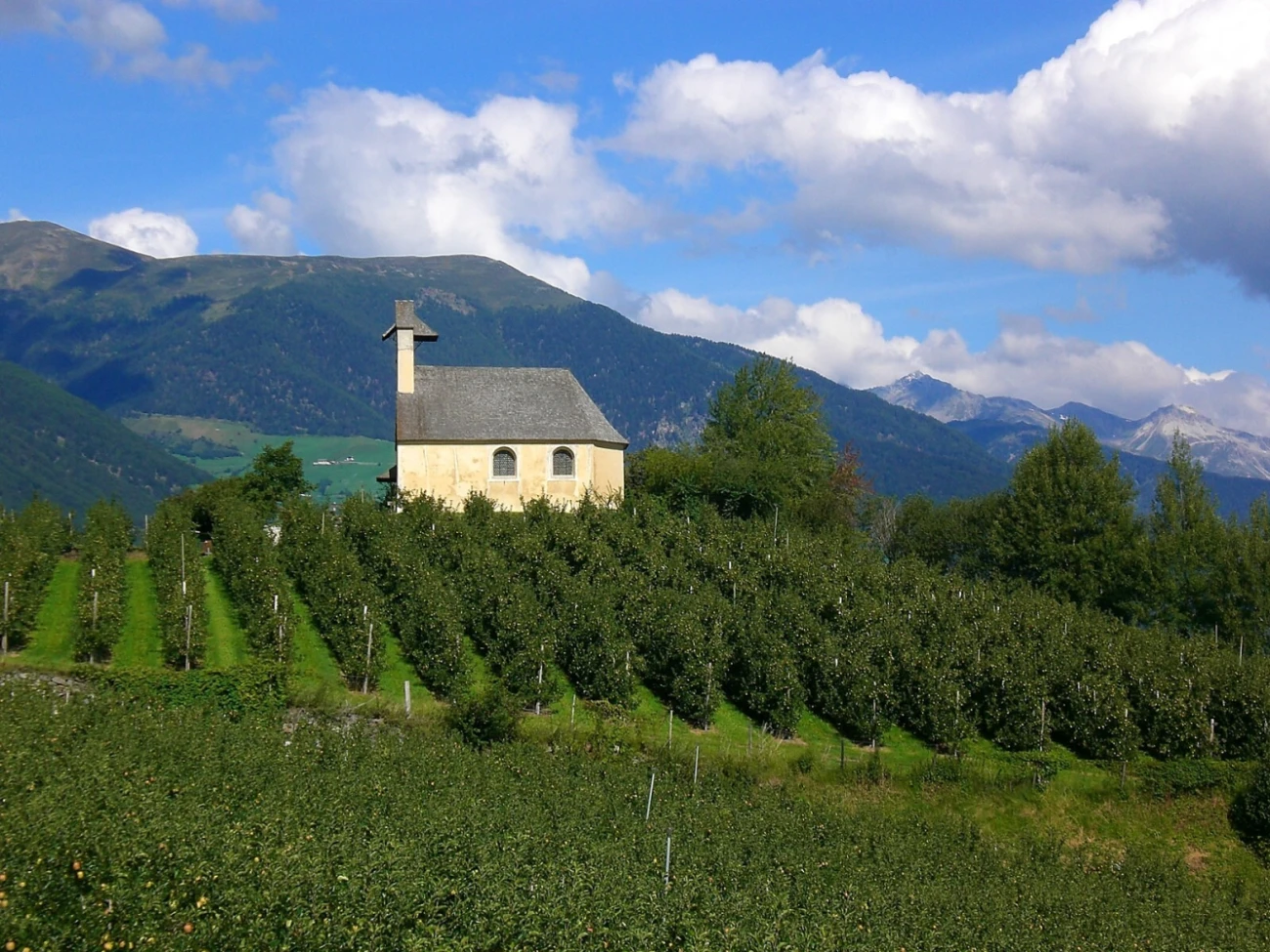 Mit dem Zug nach Eyrs, von dort zu Fuß weiter nach Tschenlgs (ca. 30 Min).