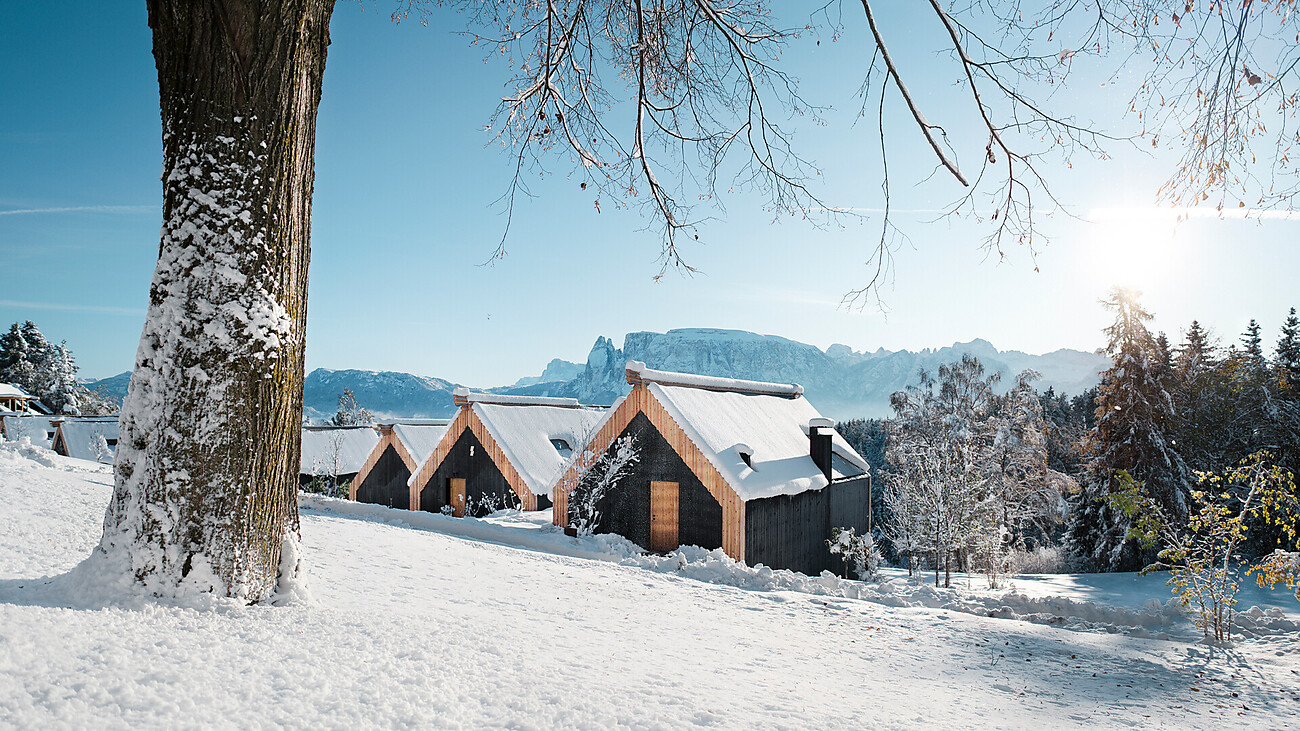 Zwanzig Chalets aus schwarzem Holz und Glas fügen sich sanft in die Landschaft am Ritten ein. Am Waldrand um das Hauptgebäude oder den tiefgrünen Naturteich. Nebenan zwei separate Gebäude mit je zehn Junior Suiten mit atemberaubendem Bergblick. In den hellen Räumen der Main Lodge zieren bunte Drucke die Wände, Holz und Naturstoffe laden zum Wohlfühlen ein. Einzigartige Wald-Spa, die Teil der Landschaft ist. Entspannen, umhüllt vom Duft von Fichtennadeln. Schwimmen inmitten aufragender Berggipfel. Und abends, durch die Glasfassaden des Panorama-Restaurants den Sternenhimmel bewundern.