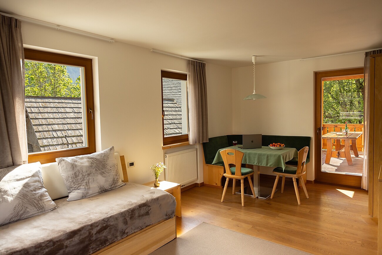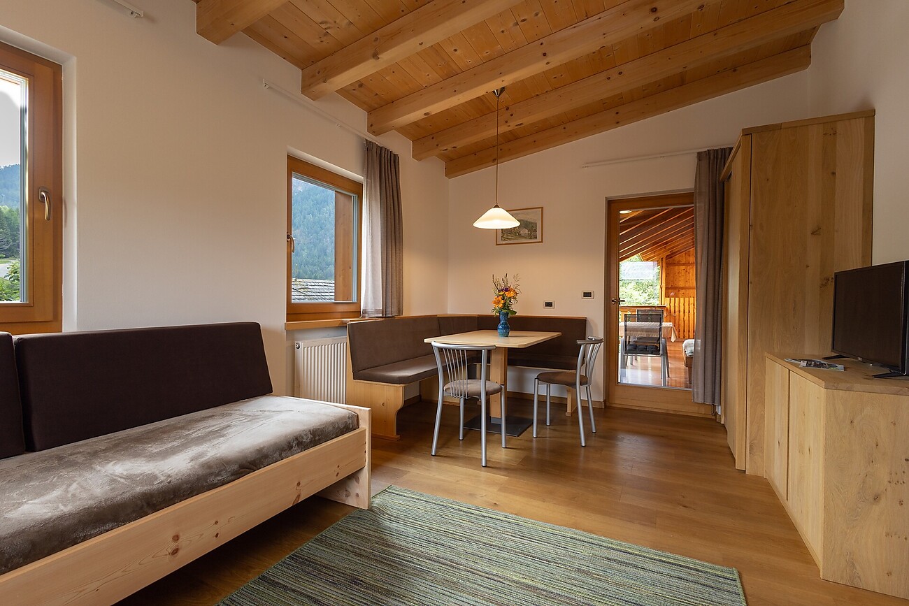 Sie werden sich wohl, ruhig und entspannt fühlen in unseren neuen oder restaurierten Wohnungen; alle mit Balkon und Blick auf die Wiesen, die Wälder und die Berge. Sie befinden sich mitten im unvergleichlichen Naturschauspiel der Dolomiten. Eine Vielzahl von Ausflugszielen wartet auf Sie. Ebenso eines der modernsten Ski-Gebiete der Welt: der Kronplatz. Ein idealer Urlaubsort für Groß und Klein.