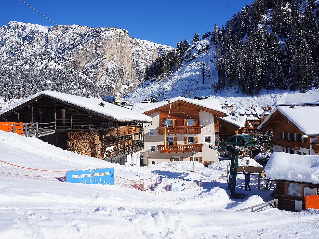 Im Sommer ist es ein idealer Ausgangspunkt für Spaziergänge, Lauf-, Wander- und Radtouren. Oder einfach zum Ausruhen in unserem Garten, während die Kinder Spaß beim Spielen haben. Im Winter ein wahres Paradies für jeden Skifahrer. Abfahrt direkt vor dem Haus mit unserem Skilift, der Sie mit dem größten Karussell der Sellaronda-Skiwelt verbindet und Ihnen unvergessliche Tage im berühmten Dolomiti Superski Gebiet ermöglicht.