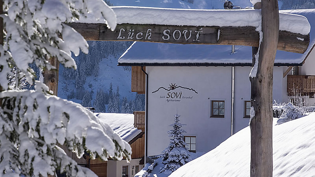 Der Ferienhof Sovì liegt auf 1350m, inmitten von Grün in einer intakten Natur, umrahmt von den Farben der imposanten Dolomiten. Der Hof befindet sich in unmittelbarer Nähe zu den zwei Skigebieten Kronplatz und Alta Badia, ungefähr 6km von der ersten Skianlage entfernt.