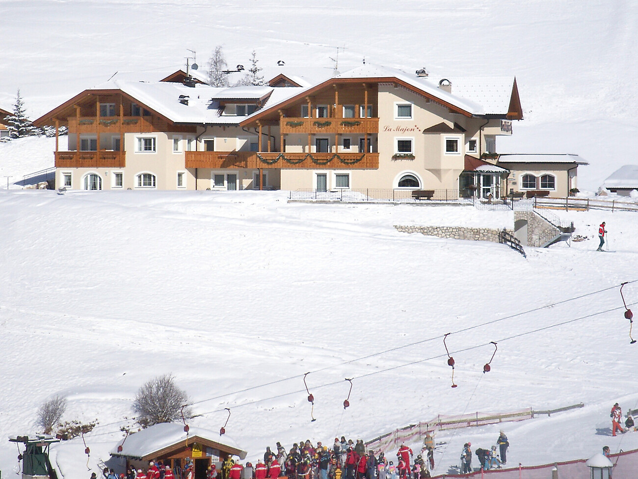 Die Lage unseres Hauses bietet einen reizvollen Ausblick auf die berühmten Dolomitenberge. Sie lädt ein unvergessliche Wanderungen zu unternehmen, sowie sich auf unserer Liegewiese zu sonnen. Im Winter sind Sie direkt am Skilift Cadepunt mit dem man Anschluß zum gesamten Skigebiet hat. Wir bieten Ihnen Zimmer mit Frühstück oder Apartments zur Wahl. NEU: Garage, Aufzug, Saunalandschaft mit: Dampfbad, Hot-Whirlpool, finnischer Sauna und Solarium.