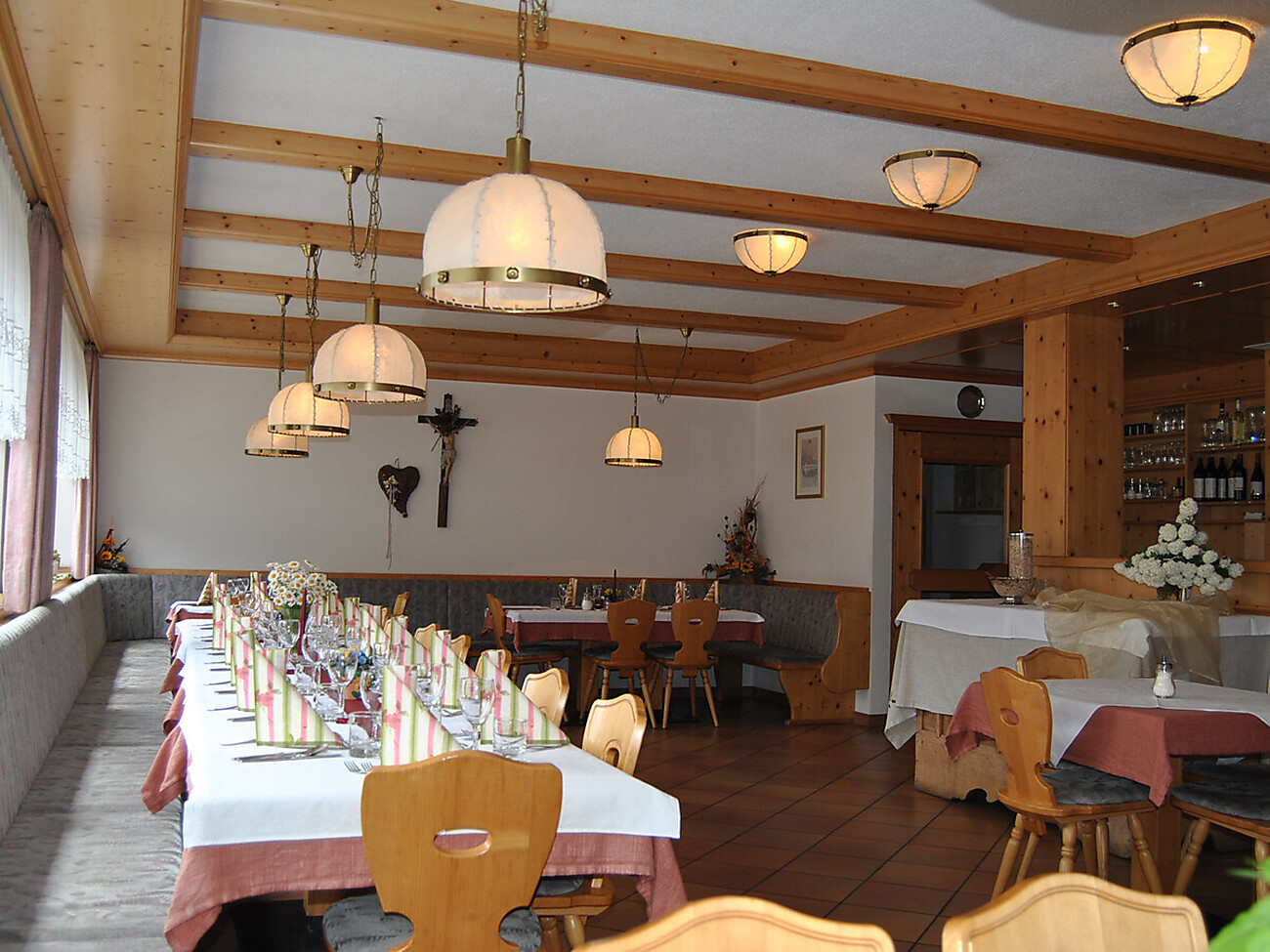 Unser Familienbetrieb bietet Ihnen geräumige Zimmer (mit Dusche und WC), eine ursprüngliche, behagliche Tiroler Stube, einen freundlich-hellen Speisesaal und Herzhaftes aus unserer Küche.