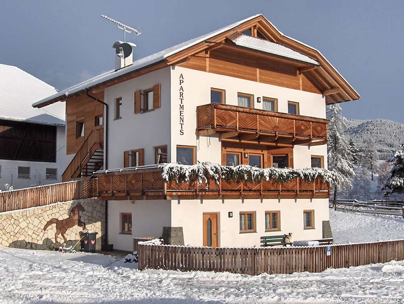 Inmitten herrlicher Natur gegenüber dem Schlern-Bergmassiv liegt in klarer Bergluft auf 1.350 m Höhe