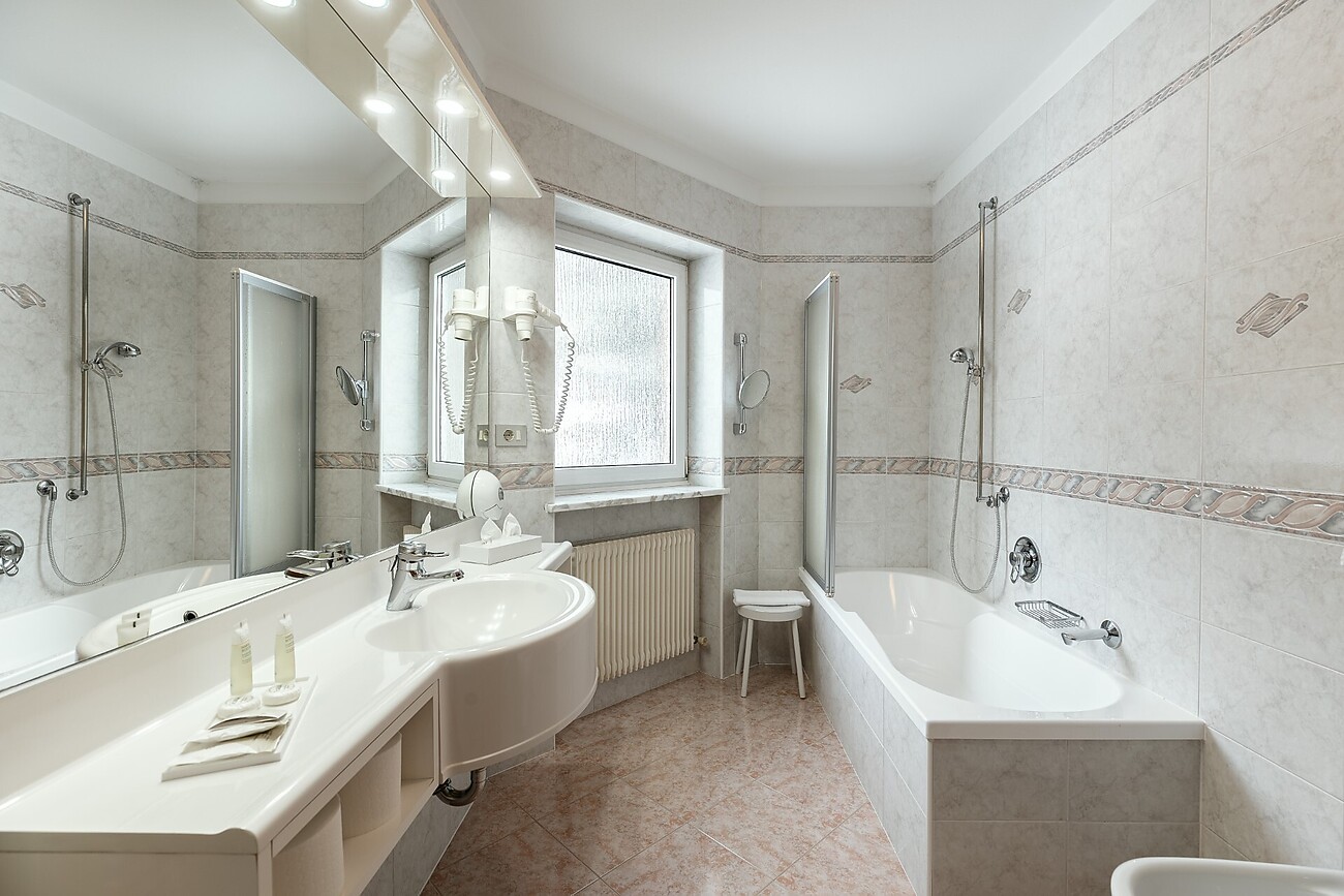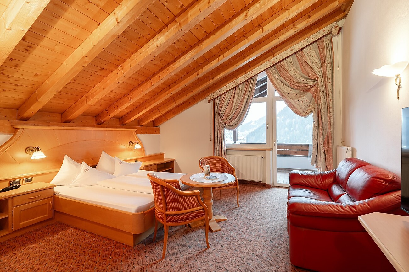 Alle Zimmer mit WC, Bad oder Dusche, Haarphon, Telefon, Sat-TV, Radio, Safe. Neue gemütliche Superior Doppelzimmer Südlage mit Balkon und neue Panorama Erkerzimmer. Hallenschwimmbad und Relax-Center mit Sauna, Dampfbad, Whirl-Pool, Solarium. Unser Hoteleigener Shuttlebus bringt Sie schnell und bequem zu den umliegenden Bergbahnen der Sella Ronda.