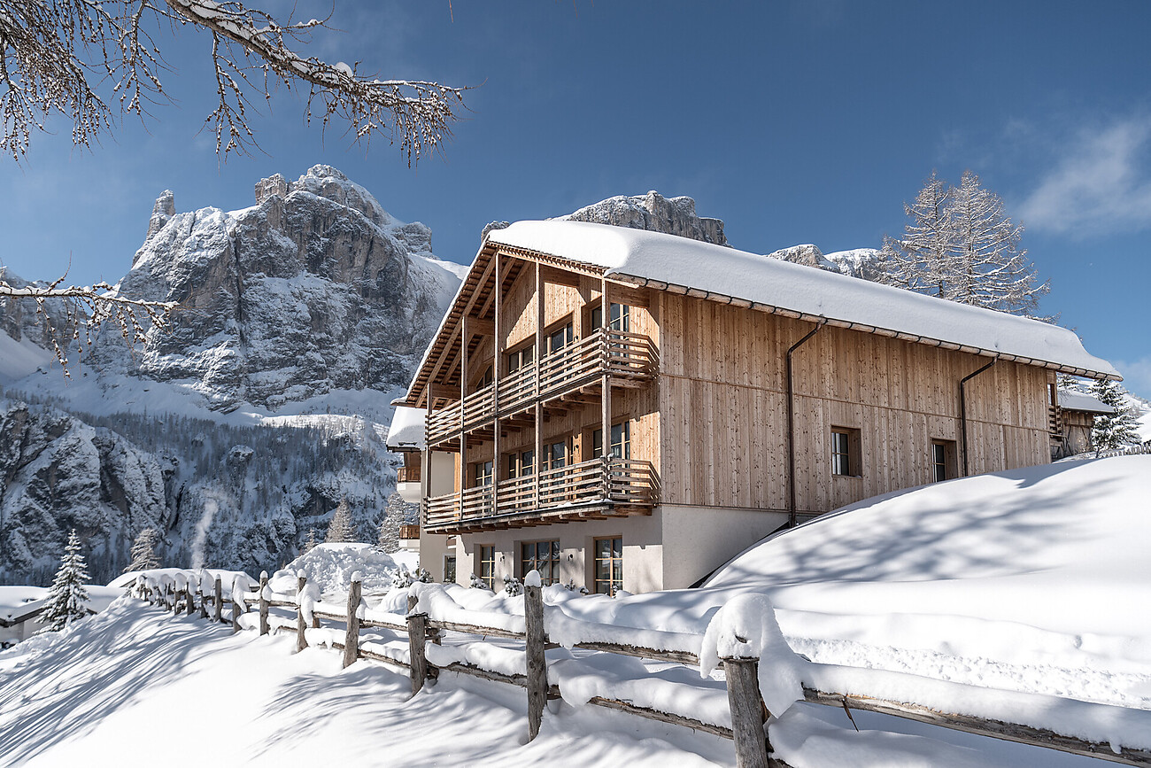 Es ist ein perfekter Ort für alle, die die Ruhe genießen und sich so von der Anspannung des Alltags erholen wollen, umgeben von einem atemberaubenden Blick auf die Berge sowie Corvara und Colfosco. Das exklusive Ambiente bietet alle Annehmlichkeiten und lädt zum Entspannen und Auftanken ein.