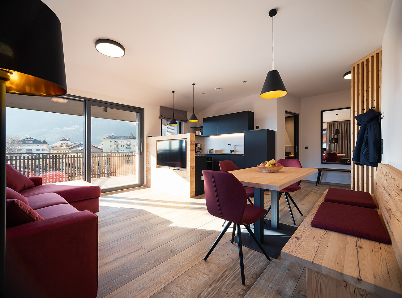 Der Malojerhof liegt im Burggrafenamt in zentraler und ruhiger Lage, in mitten von Obstgärten. Sie erreichen von uns aus alle Ausflugsziele schnell und bequem. Unser Betrieb wurde 2023 neu errichtet und ab Februar 2024 sind wir für sie da. Wir bieten 4 Apartments mit jeweils 75qm, zwei getrennten Schlafzimmern, zwei Badezimmer, Balkon und Terrasse. Parken sie bequem in unserer hauseigenen Tiefgarage und genießen sie unseren Naturpool, Feuerstelle, Sauna und Liegeweise in unserem Garten. Auch für unsere kleinen Gäste ist bestens gesorgt. Für ein gemütliches beisammensitzen, steht ihnen unser Aufenthaltsraum zu Verfügung.