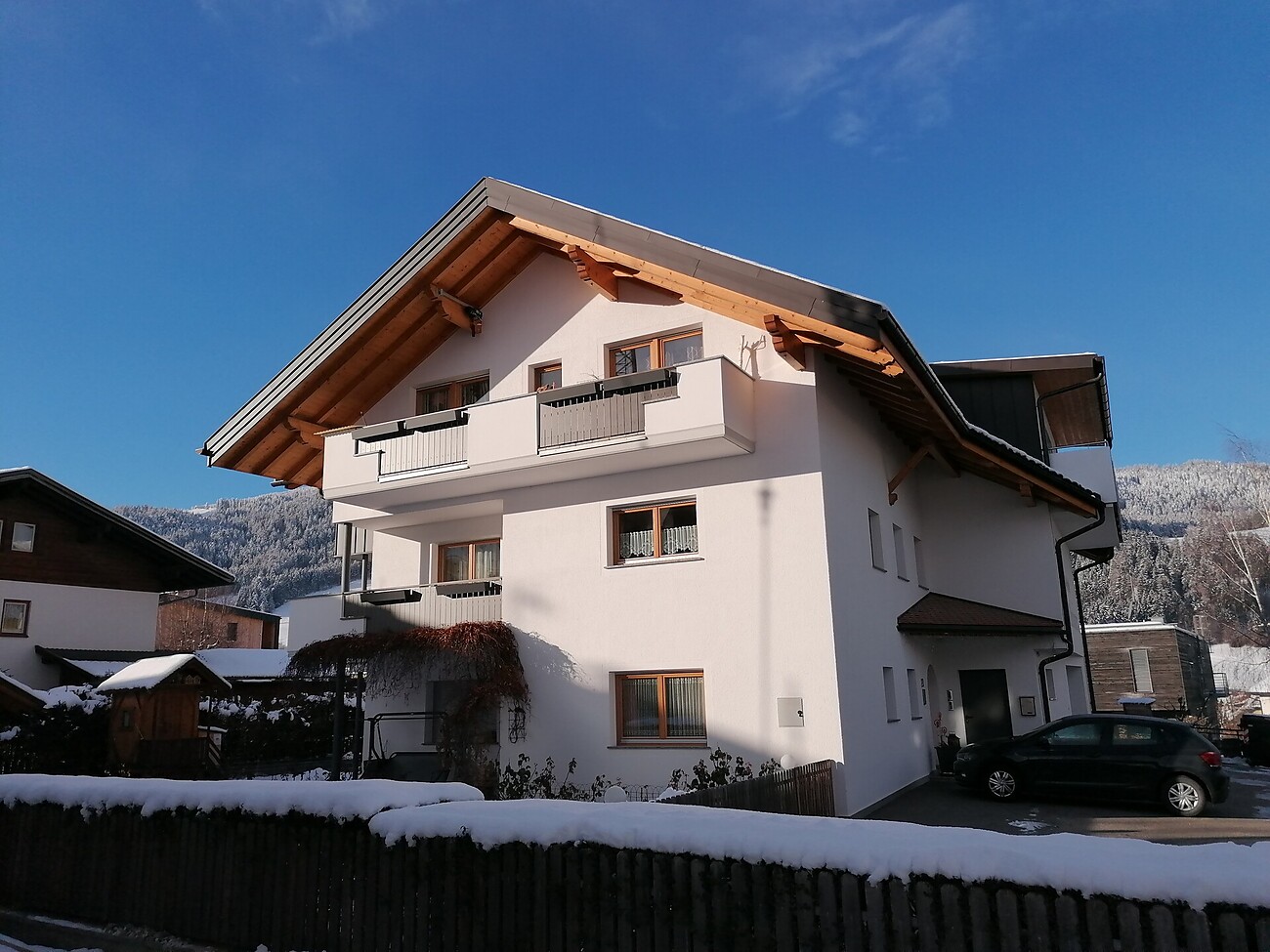 Direkt am Haus befindet sich ein hauseigener Parkplatz sowie eine Liegewiese.