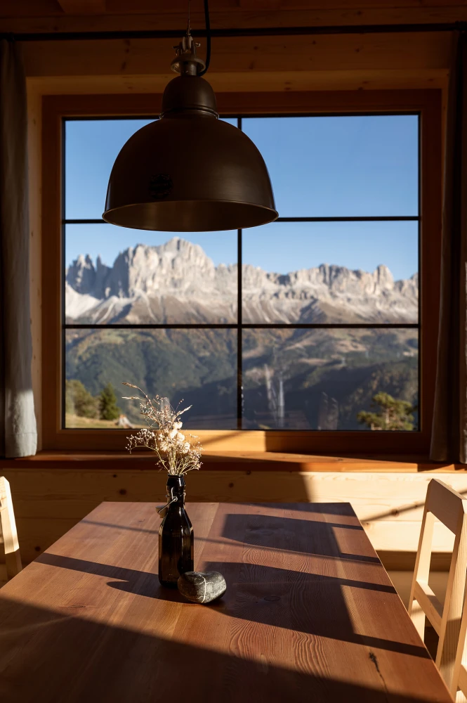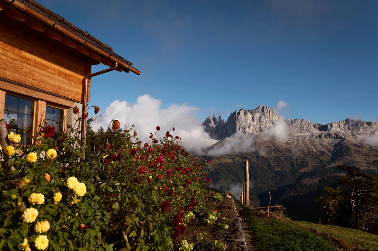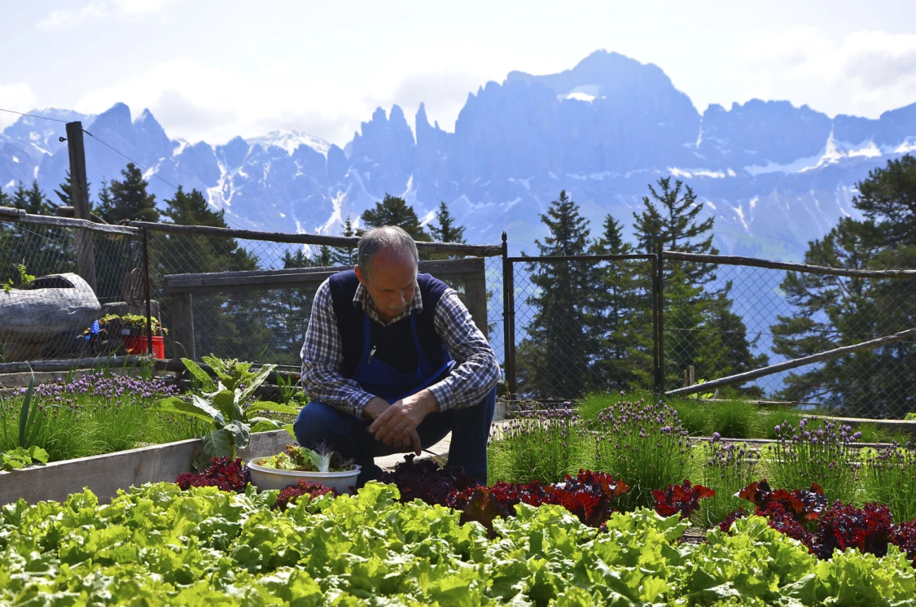 Unsere Gäste genießen hier oben nicht nur den atemberaubenden Panoramablick auf die umliegenden Berggipfel des Rosengartens, der Vajolet Türme, des Schlerns und des Latemars, sondern auch die köstlichen Gerichte der Südtiroler Küche, die wir mit frischen Kräutern verfeinern. Sämtliche Salate wachsen im hauseigenen Gemüsegarten hinter dem Haus und die Wildkräuter, Beeren, Pilze usw. sammeln wir in der umliegenden Natur.