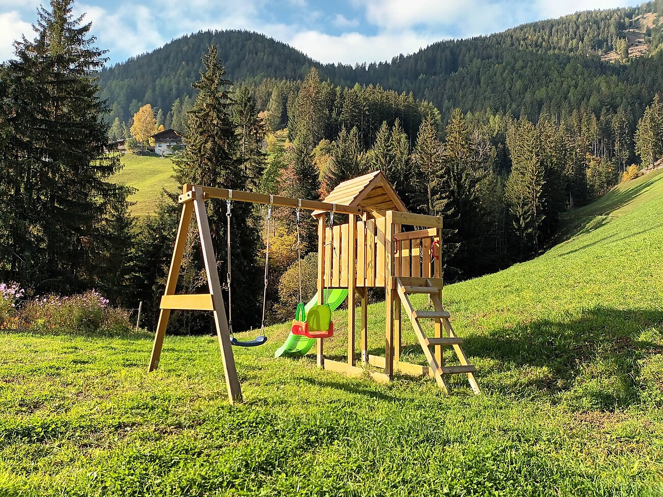 Unsere drei Ferienwohnungen sind naturnah mit Holz erbaut und mit viel Liebe eingerichtet. Die sonnige Terrasse mit Blick zur Sarner Scharte ist ein Platz zum Wohlfühlen und Kraft tanken. Hier können Sie den Alltag vergessen und Ihren wohlverdienten Urlaub genießen!