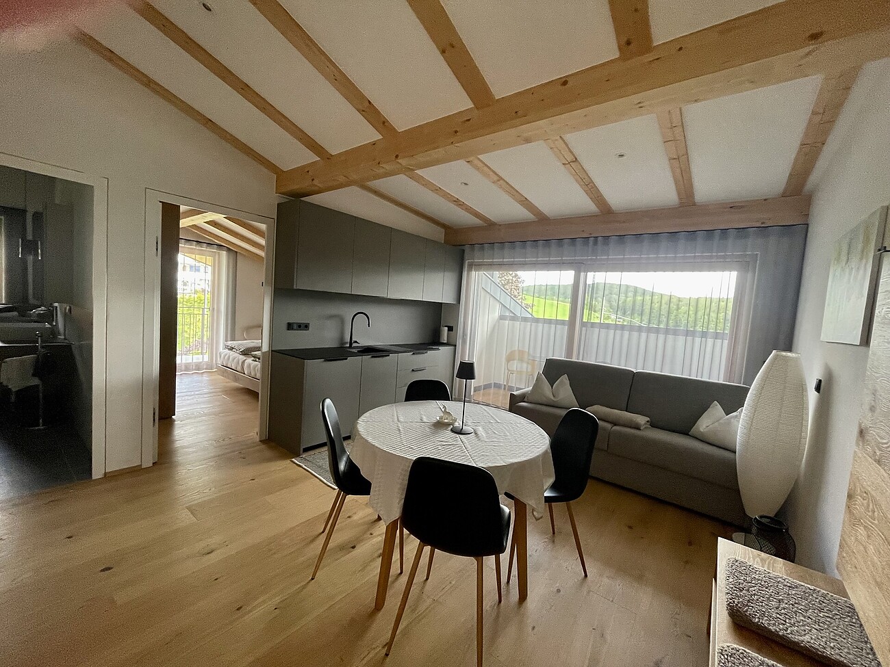 Die Wohnungen selbst sind liebevoll ausgestattet: Eine moderne Küche, ein geräumiger Wohnraum, ein gemütliches Schlafzimmer und ein Badezimmer mit Dusche/WC sorgen für alles, was Sie für Ihr tägliches Wohlbefinden brauchen. Genießen Sie die Ruhe und die frische Bergluft und lassen Sie den Alltag hinter sich – hier im wunderschönen Sonnendorf, zwischen Bruneck und Brixen.