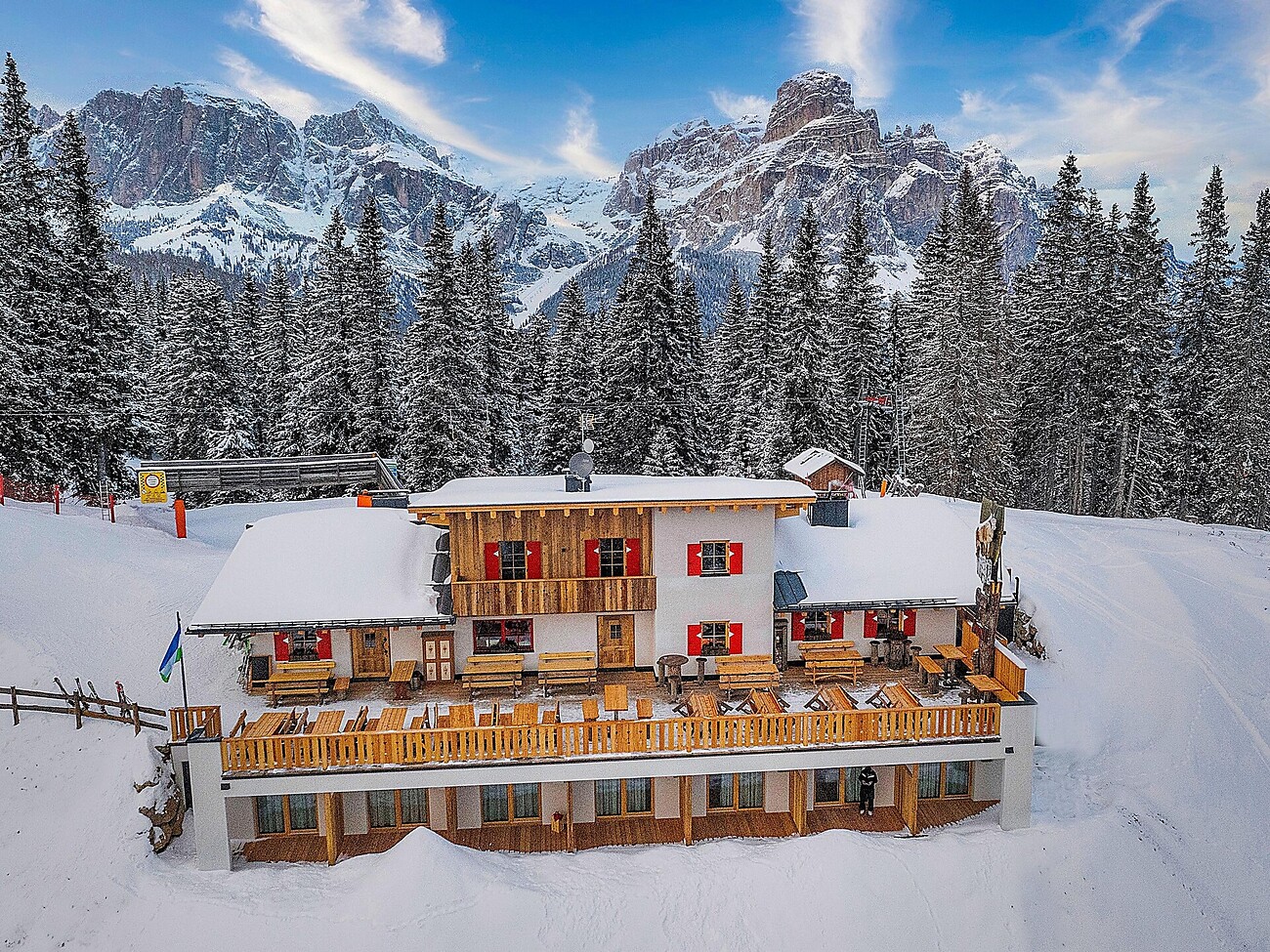Hier wird aber nicht nur Hochgenuss fürs Auge geboten ... Die Energie und Kreativität der neuen Eigentümer, die Gebrüder Niederkofler, haben diese Berghütte in den letzten Jahren zu einem wahrhaft besonderen Ort werden lassen, an dem die besten Traditionen der alpinen Gastfreundschaft noch hochgehalten werden und typisch ladinischen Rezepten neues Leben eingehaucht wird. Nicht umsonst ist das Wahrzeichen der Berghütte die Gämse, eines der graziösesten, beweglichsten und geschicktesten Tiere der Dolomiten.