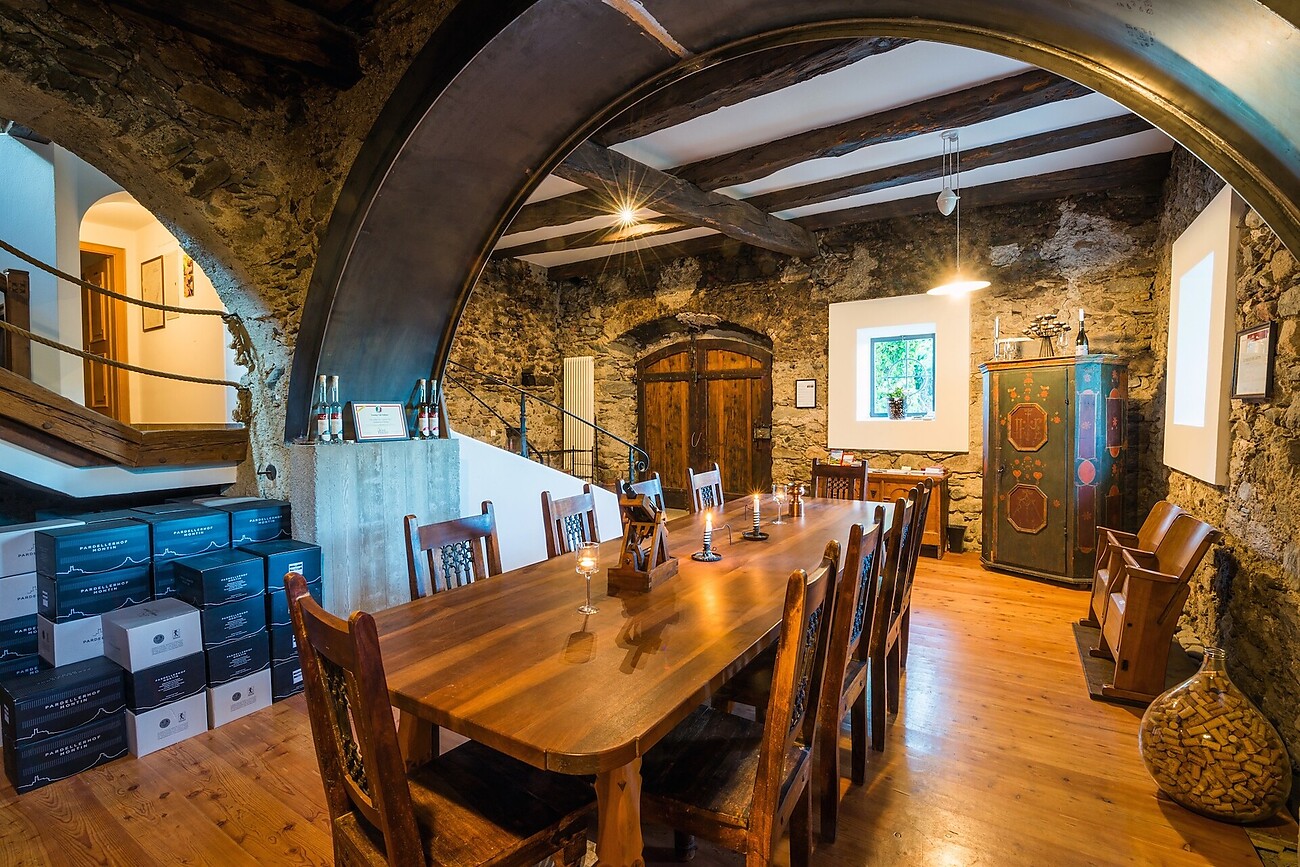 Als Familienbetrieb produzieren wir ortstypische Qualitätsweine, Sekt, und Apfelsaft. Bei uns müssen Sie sich um nichts Wichtiges kümmern, Sie können am Schwimmbad entspannen, Bergtouren unternehmen, Wandern, Radfahren und Ihre Kinder können sich auf der Spielwiese austoben. Auf Wunsch haben Sie auch Einblick in die Tätigkeiten am Hof und können an den wöchentlichen Weinverkostungs-Abenden im idyllischen Steingewölbe teilnehmen.