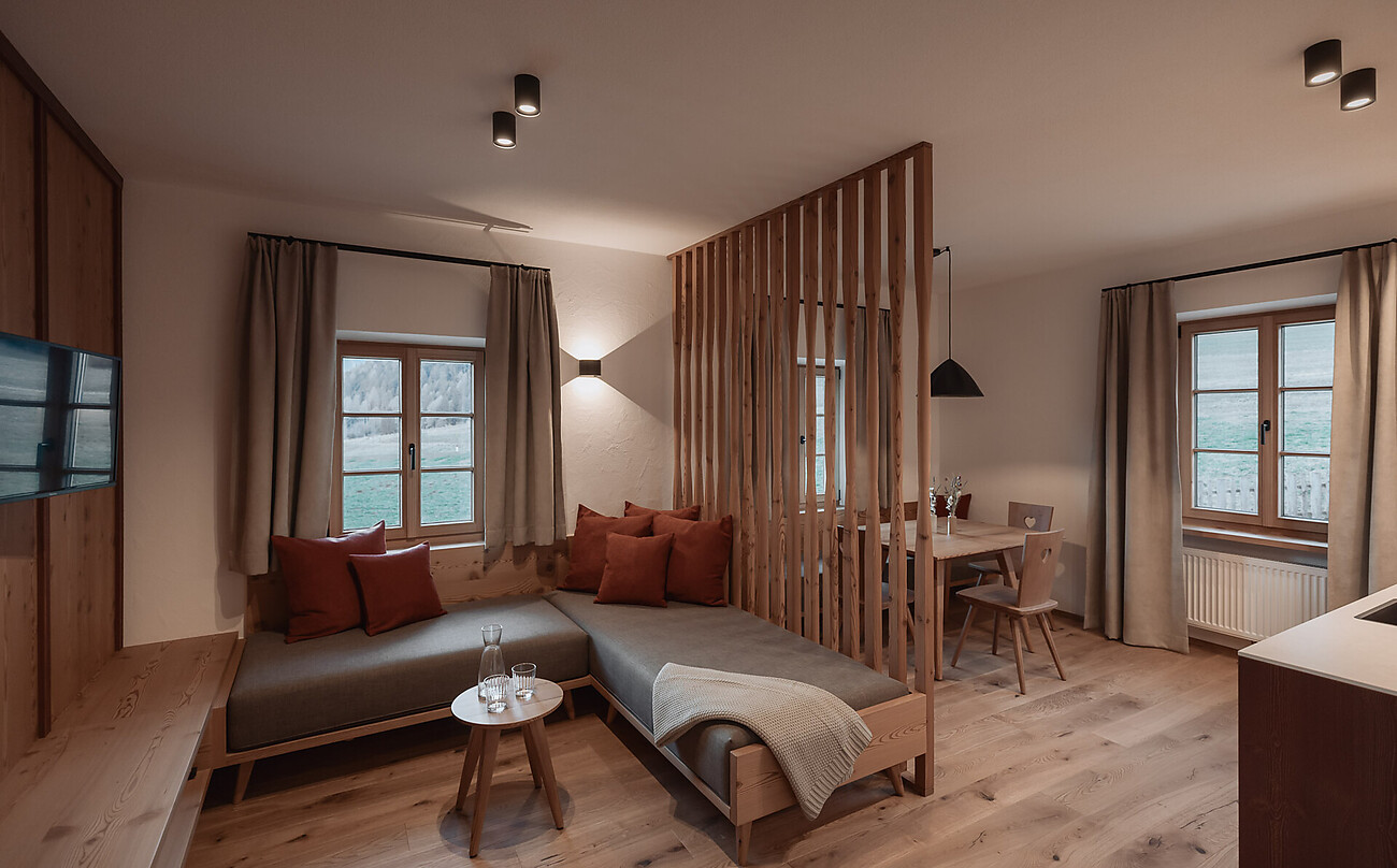 Nestled between the Dolomites and the Alps, the Aberle Hof offers a rare mix of historic farmhouse flair and relaxed, modern living. The heritage-protected farm in Rasen-Antholz whispers of the past, while the new, lovingly designed apartments reflect contemporary lightness. A retreat for active spirits, nature lovers, and families. A farm holiday for everyone who wants to rediscover how good it feels to slow down, take a deep breath – and experience a genuine piece of farm life.