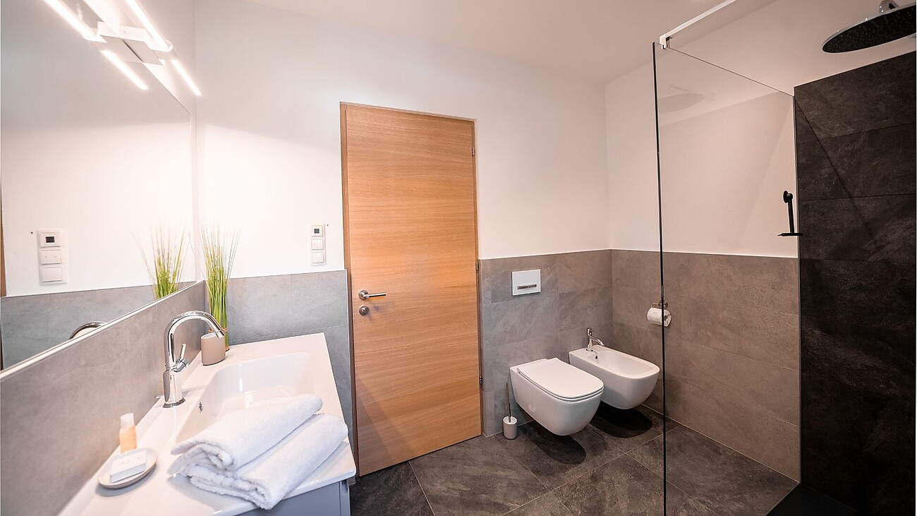 The light-flooded apartment has been stylishly furnished. The 2 bedrooms can accommodate 4 people. A bathroom with window, a garage for bicycles and a car are also included. The terrace offers a beautiful view of the village and the lake. Breakfast here or just enjoying the sun and the panorama is pure relax. The accommodation has a 50 inch Smart TV, free Wifi, air conditioning, underfloor heating, dishwasher, elevator & smart home system.