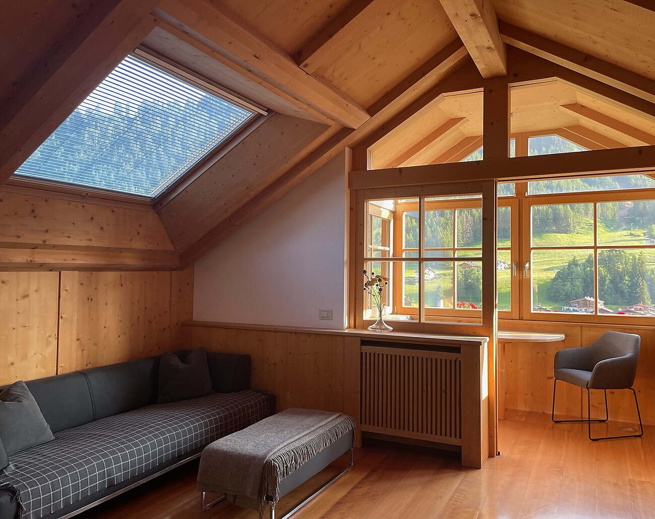 The Apartments are located right next to the centre of Ortisei, the panoramic and sunny position , combined with proximity to the centre ( approx. 300 metres on foot ) , makes it a strategic location for all kinds of activities and holidays.