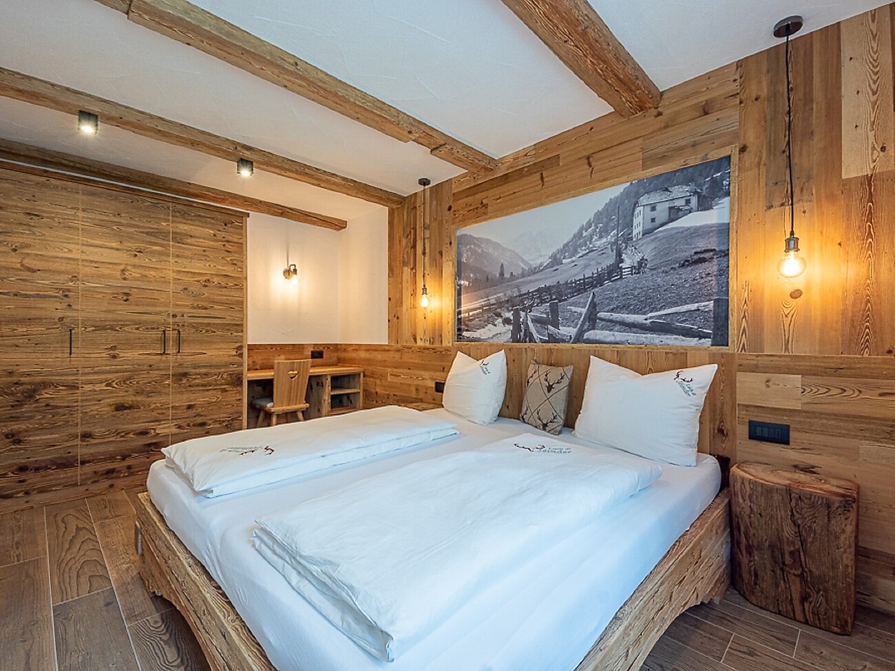 The beds in the flats are made with the walls of the original farmhouse walls. We have put value on the recycled materials, they are part of our family and tradition.