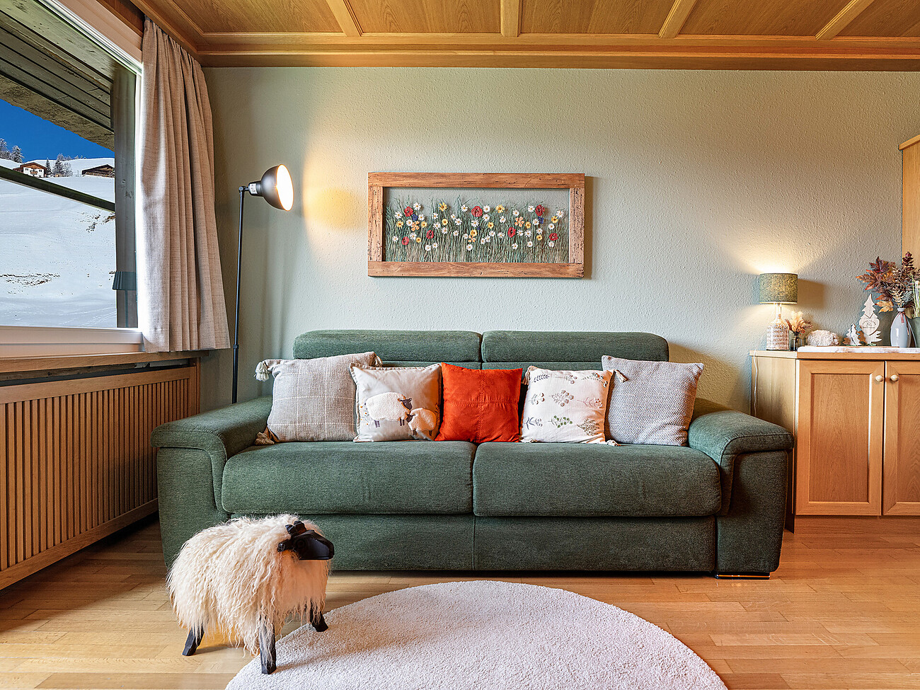 -Cosy wood-panelled living-room with a double sofa-bed, Digital TV, dining area and large sunny balcony.
