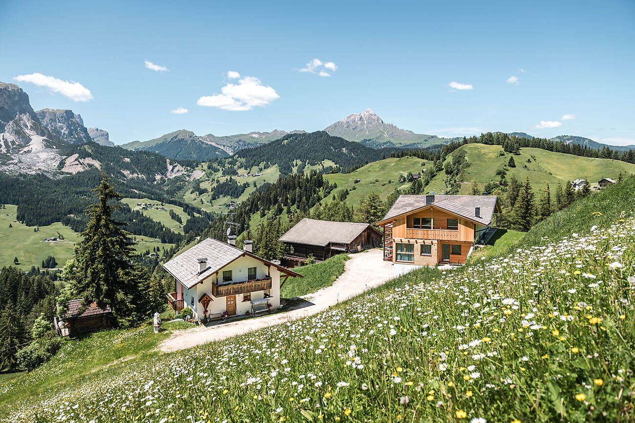 Andrac Apartment is located on Andrac Farm in Badia/Abtei, owned by the Alfarei family. It’s a completely new lodge, full of light and immersed in nature. Behind the characteristic wooden façade there are ample spaces furnished in a warm and refined style inspired by the surrounding landscapes that suggest the combination of natural materials with pastel colours and red accents.