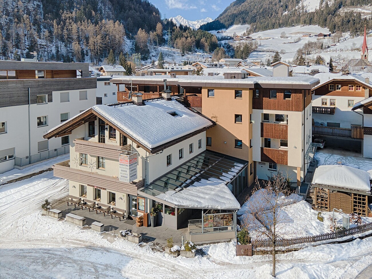 Then Apartments Treffpunkt in Mühlen in Taufers is the right place for you! In our brand-new apartments you can enjoy the peace and tranquility of the countryside, while living in the middle of the village center, right next to bars, restaurants, shops, pharmacy, bank, bakery and a bus stop.