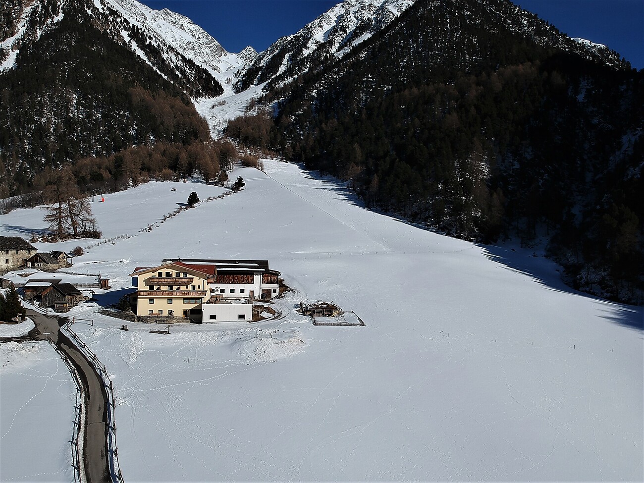 The Außergließhof lies in the Valle Mazia/Matschertal Valley (1,824 m). The farmstead of the family Theiner offers 3 beautiful apartments and 6 double rooms. Your hostess will serve you a delicious country-style breakfast. The nearest restaurant is the Glieshof (300 m). The Valle Mazia/Matschertal Valley is a marvelous area for excursions. The surrounding 3000 meter high peaks can be reached easily from our inn.
