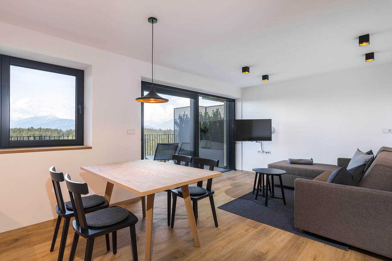 Our residence dispones about four apartments for four - six persons. The apartments have one bedroom with a double bed a very comfortable living room with kitchen and sofa bed and one bathroom and terrace. We have also a garden with sun lounger as well. If you wish, you can order a breakfast with traditional food. For relax you are allowed to use the little beauty farm with sauna from the Residence Moritz beside us.