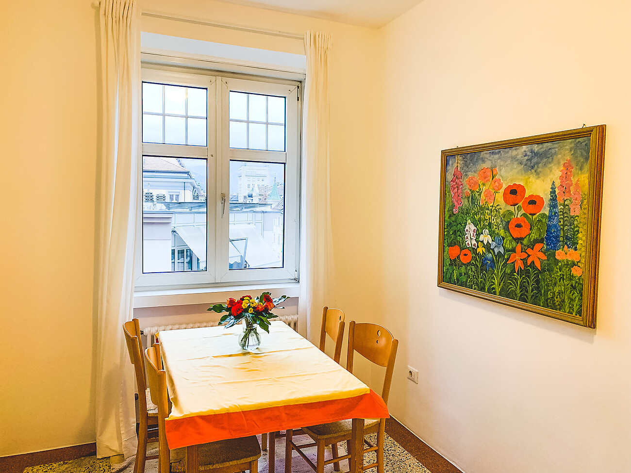 The green lung of Bolzano pulsates in Suite 73, as the lovingly restored building from 1906 borders on the Talfer meadows. The view is of the mountain rose garden. Ötzi Museum, University, Cathedral, Lauben, Walther Square are in the immediate vicinity.