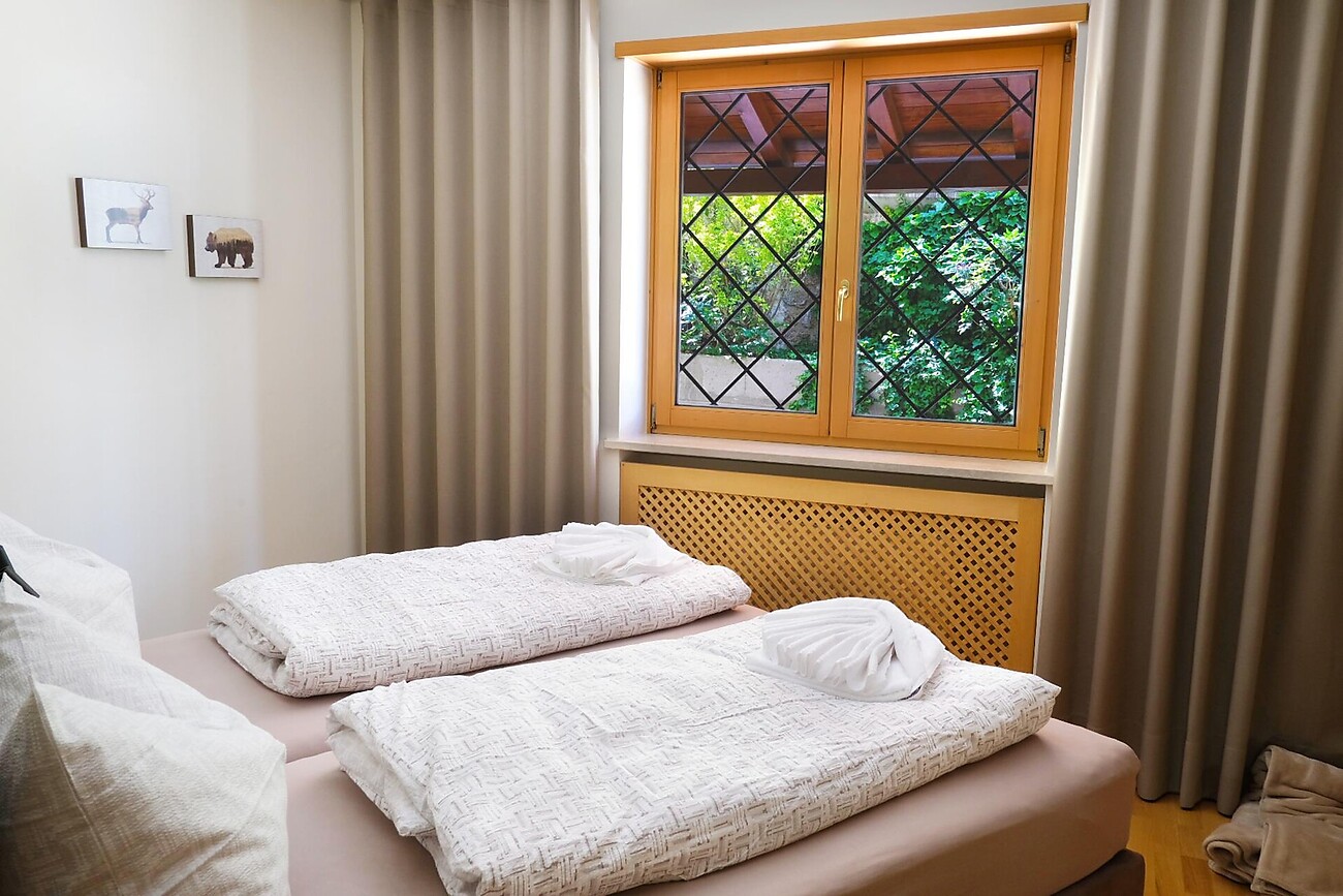 The highlight of this apartment is the large south-facing terrace with a far-reaching view of the mountains and sun from early morning until late afternoon. The apartment is super quiet away from any road traffic or other noise. Our guests park their car on their own garage parking space. The Partschinser waterfall is only a few (albeit steep) minutes walk from the apartment. Shopping facilities are very close in the village center. The apartment (70sqm) has 2 separate bedrooms, large kitchen with dining table, a living room, bathroom with shower and bidet, an additional day toilet and a 30sqm terrace. You will find everything you need to live, sleep, cook, wash and clean like at home. There is also an elevator in the house. The apartment itself is located on an elevated first floor on a slope. The quiet hours are from 21:30pm to 6am and from 12:30pm to 2pm