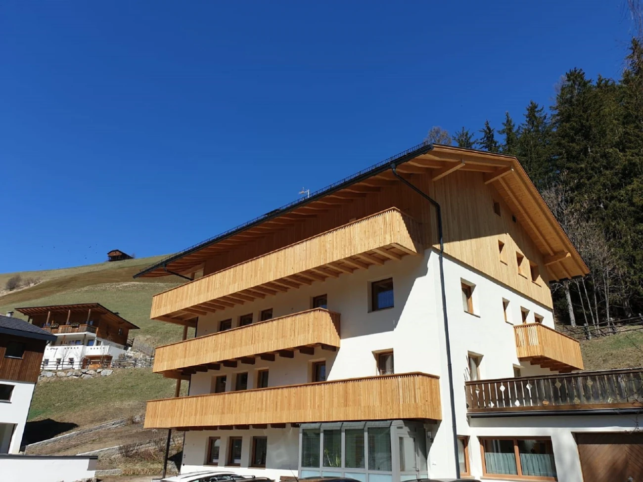 The flats at Ciasa Mael are fully renovated, modern and equipped to make your holiday comfortable. The rooms are spacious and bright. All flats have balconies or terraces to allow you to stay outside. The flats are located in a quiet area and not far from the beautiful centre of La Valle. They have a private car park, a dedicated ski room and a bike storage room. They are a 5-minute drive from the main ski complexes: Plan de Corones and Alta Badia. In summer, there is the possibility of access to many walks from the house. Ciasa Mael is the optimal choice for a holiday of relaxation and outdoor sports.