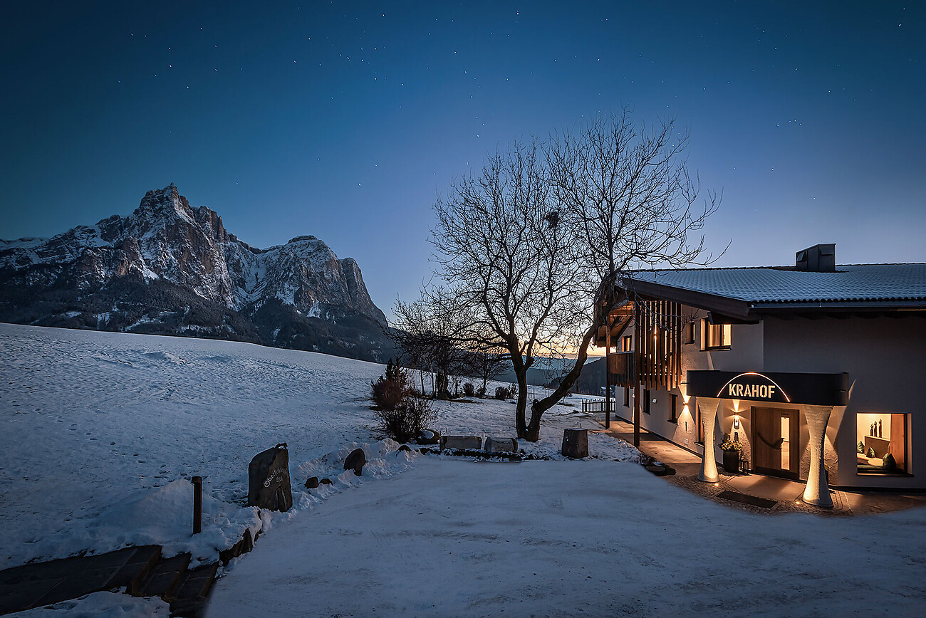 The view is breathtaking! Our Krahof is nestled in the greenery, quiet and sunny, directly opposite South Tyrol’s most famous mountain, the Schlern. You can enjoy this tranquility and stunning view throughout your entire vacation at our farmhouse in Kastelruth. The Krahof is a haven for relaxation and unwinding, as well as the perfect starting point for hikers, climbers, bikers, skiers, and culture enthusiasts. In 2024, we completely rebuilt our farm and created exclusive, luxuriously equipped holiday (d)reams. We are confident: you’ll never want to leave!