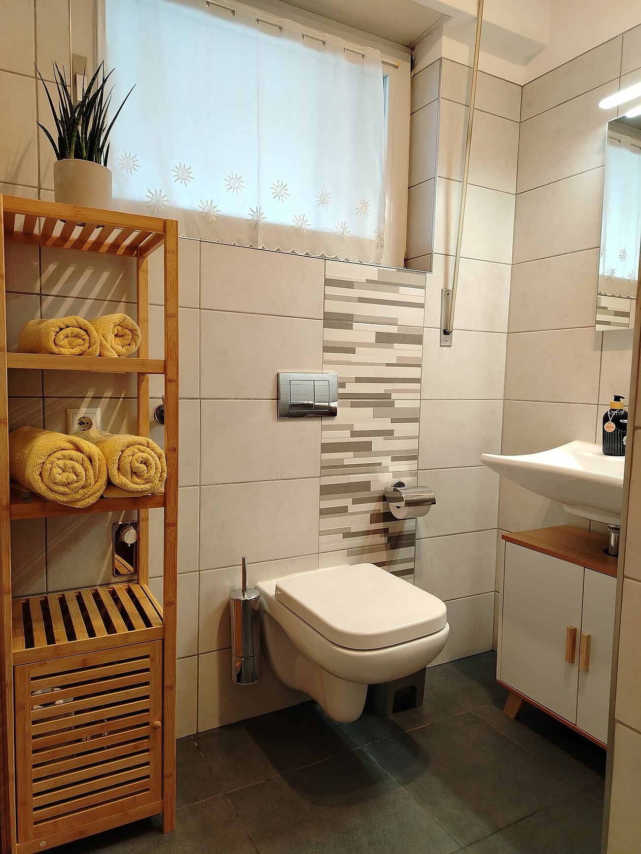 The bright and cozy 32 m2 holiday apartment is ideal for 2 people and for families with small children, offering a pleasant and relaxing atmosphere. From the entrance, you can access the fully equipped kitchen and the modern bathroom. The living and sleeping area is comfortably furnished and features a double bed and a sofa bed. Bed linen and towels are provided. A lockable bicycle storage room is available on request; a baby cot, high chair and bottle warmer are also available on request. The sunny south- facing terrace with mountain views, directly adjacent to the living are, is perfect for breakfast or relaxing moments. The train station, bus stop, cycle path and playground are all within immediate proximity – ideal for excursions and trips.