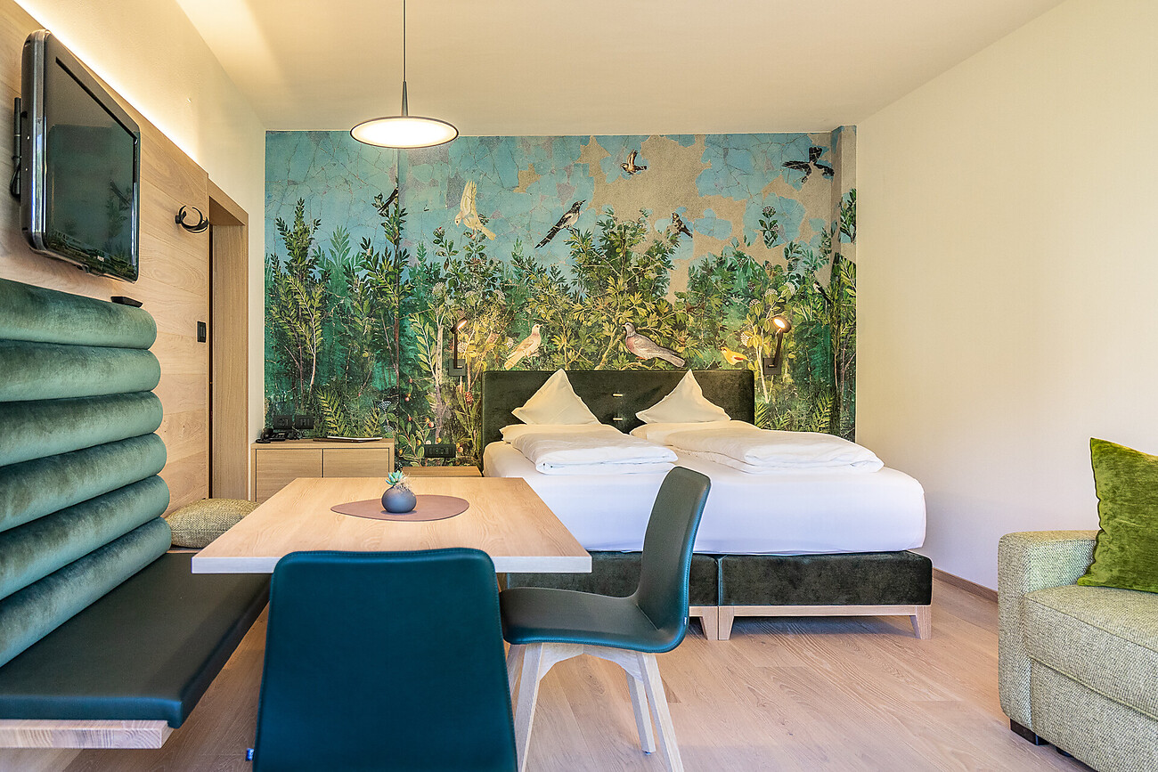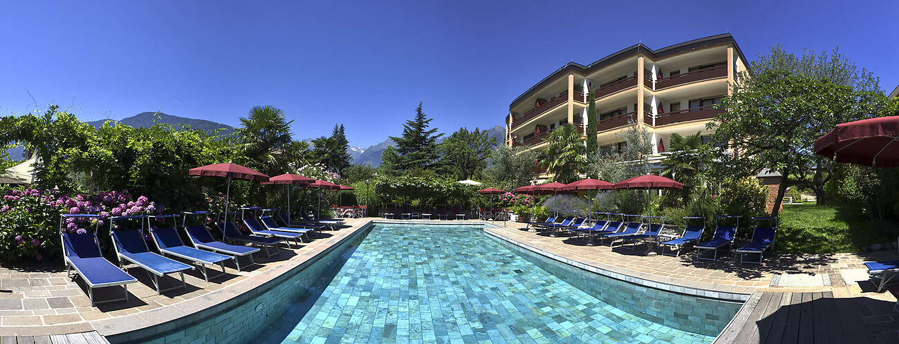 Our Residence is surrounded by beautiful mountains, right in the midst of a sunny perfumed garden (12 walking min. to the centre). Apartments for holidays and bed and breakfast. Free-pool 29°, hot-whirlpool, café , sauna, massage, fitness-room, parking, member of the Golfclub Lana, special-weeks for families and babies, playground for children.