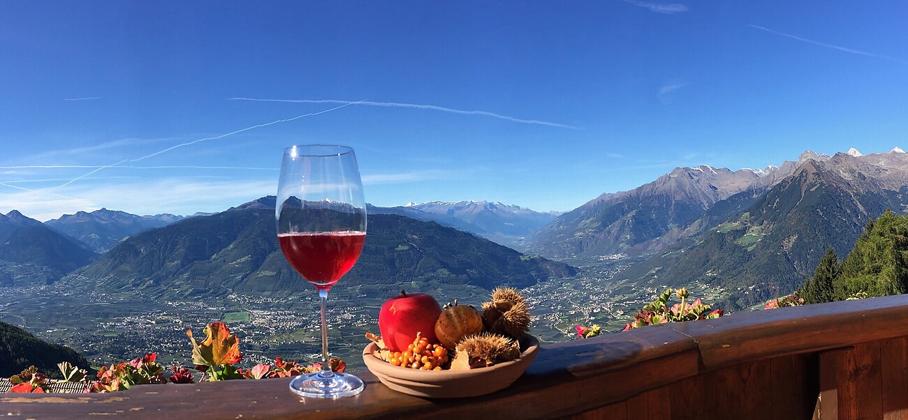 The Gasthof Greitererhof is located at 1,470 m above sea level on the Schenna Mountains, above the valley of Merano.