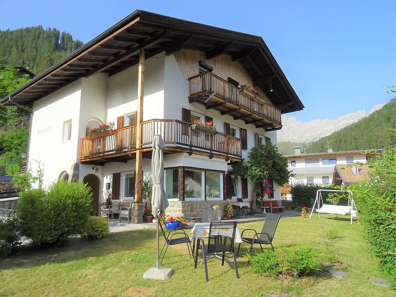 The Alpenglühen house has 2 comfortable holiday apartments with 1, 2 and 3 bedrooms and a balcony. The town center with the various shops, the bus station and the ski slope can be reached on foot in 10 minutes. Our house is an ideal starting point for hikes. You can also make yourself comfortable in our beautiful garden. We are happy to accept your pet. Parking is available directly at the house. We kan also organize fresh rolls for breakfast for you .