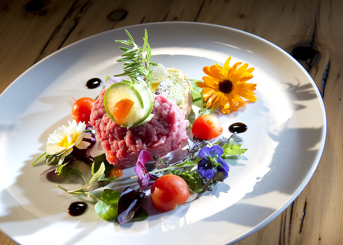 On the ground floor of the former barn, you will find a welcoming restaurant and café, perfect for leisurely moments. Recently added is a bright, modern conference room with panoramic views of meadows, forests, and the picturesque lily pond – the ideal setting for creative work in the heart of nature.