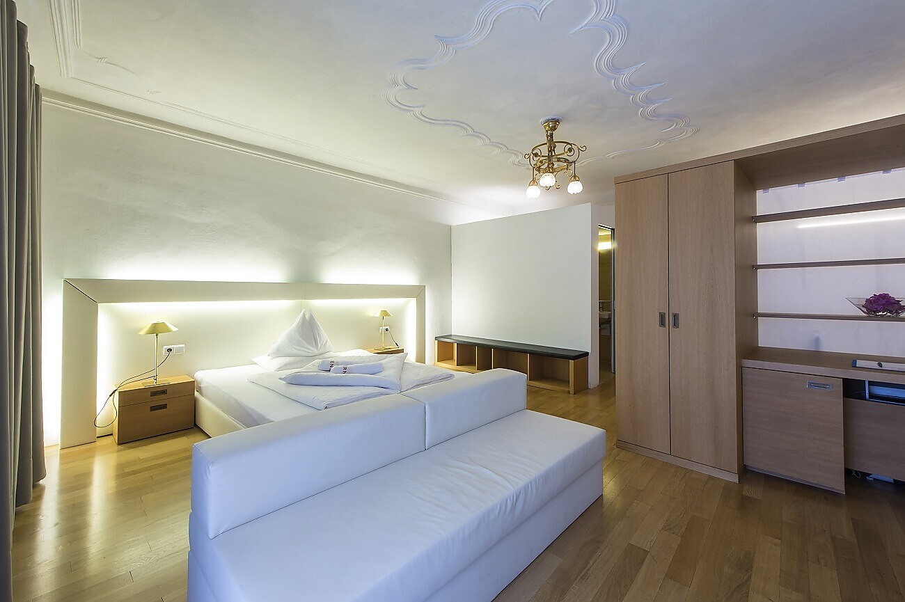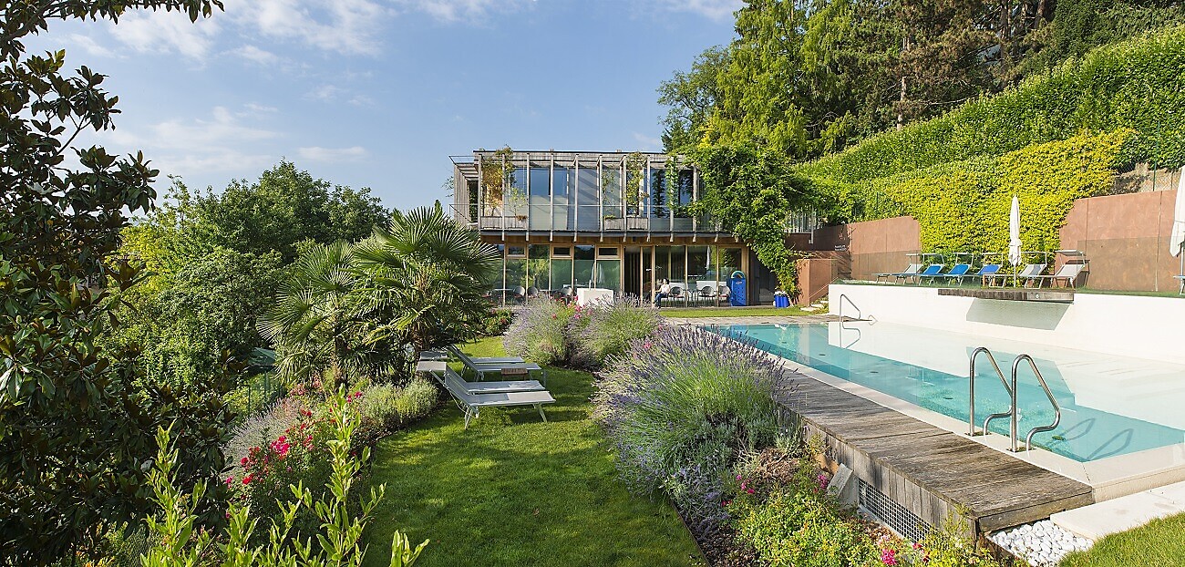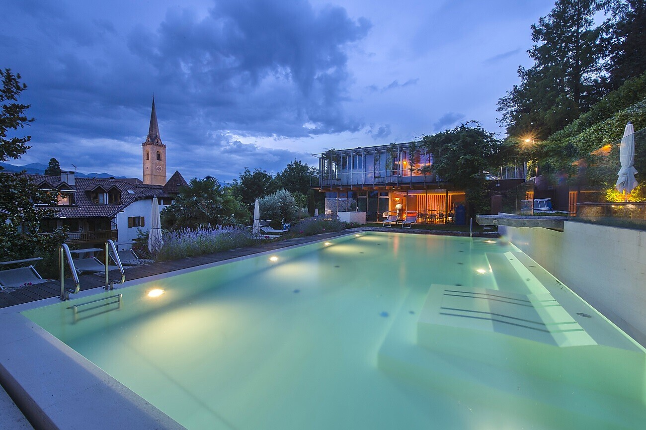 Enjoy an ice cream, eat well, drink a glass (or two) in the evening – then walk back to the Hotel Goldener Stern, located next to the market square of Kaltern, on South Tyrol’s Wine Route. The church bells ring at noon, while in the evening laughter peals from the restaurants and bars; and, throughout the day, boutiques and bistros invite you to stroll and browse, to sit down and enjoy your time here.