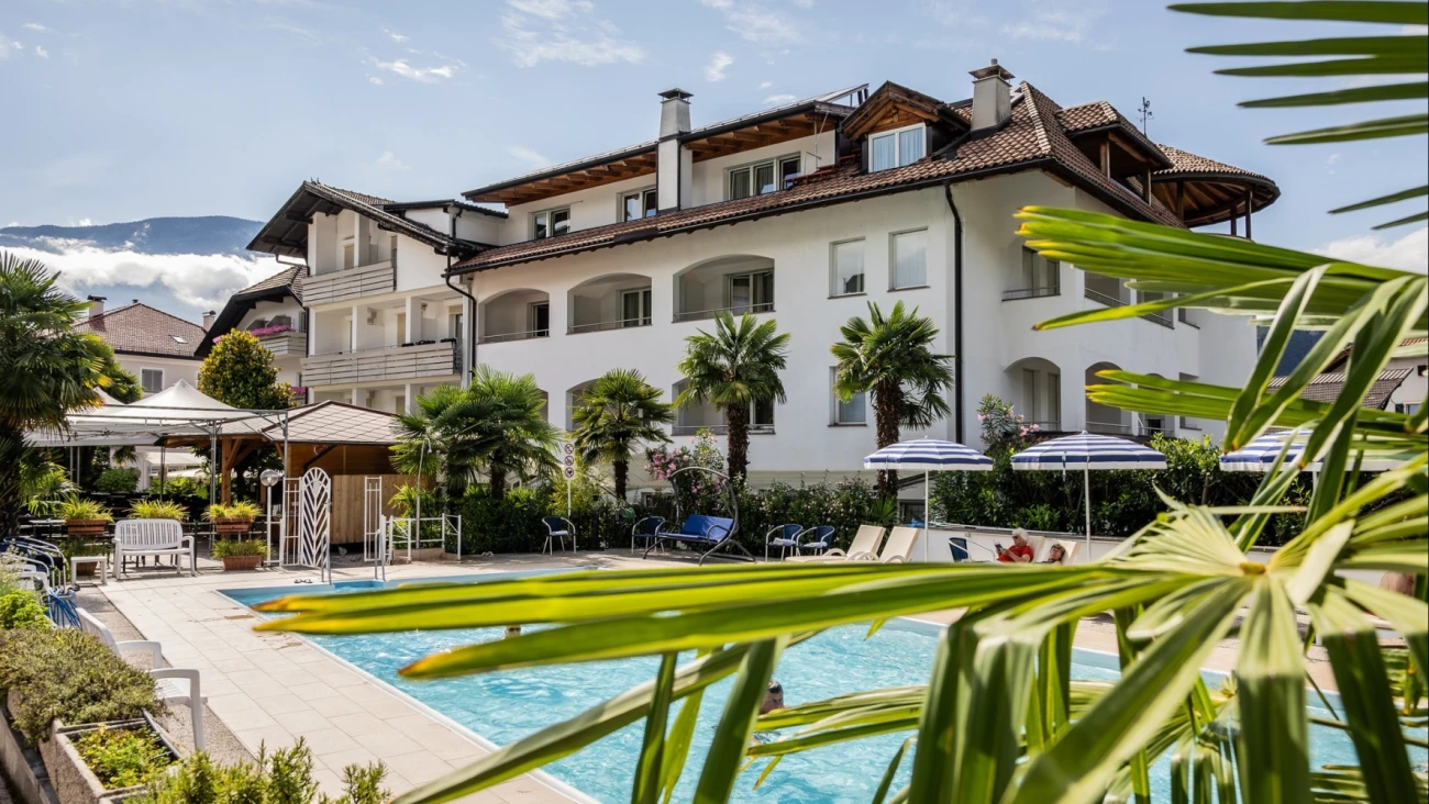 Experience Mediterranean climate combined with South Tyrolean hospitality and let yourself be pampered in our oasis of ease! Our hotel is located idyllic and quiet, in the old center of Auer, only 16 km from the city of Bolzano and 5 km from Lake Caldaro. The owner is personally responsible for the culinary pleasure. Our highlight is the extensive, highly enjoyable breakfast buffet. The rooms impress with Mediterranean charm and our residence is even more cozy and welcoming thanks to new tastefully furnished rooms with air conditioning. Time for lounging will promise our outdoor swimming pool. For an additional charge, is the light-flooded "Rooftop" wellness area in the residence with Finnish dress-on sauna, infrared cabin, whirlpool and various cardio equipment available. Active vacationers as well as seeking ease guests will feel comparably comfortable. ATTENTION! The wellness area will be closed this year due to Corona. Markushof is characterized by a family atmosphere and naturalness. We would be happy to welcome you and will do everything for your well-being vacation!
