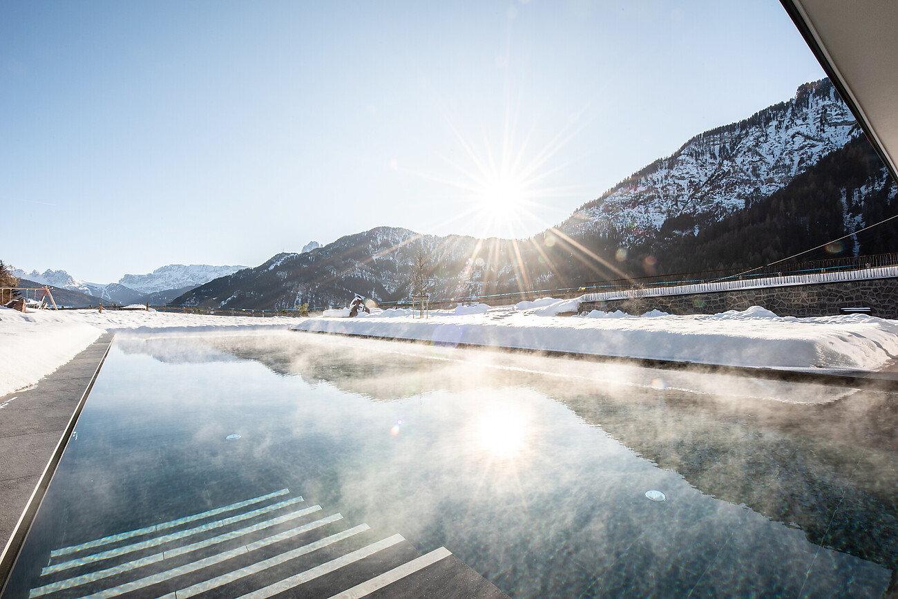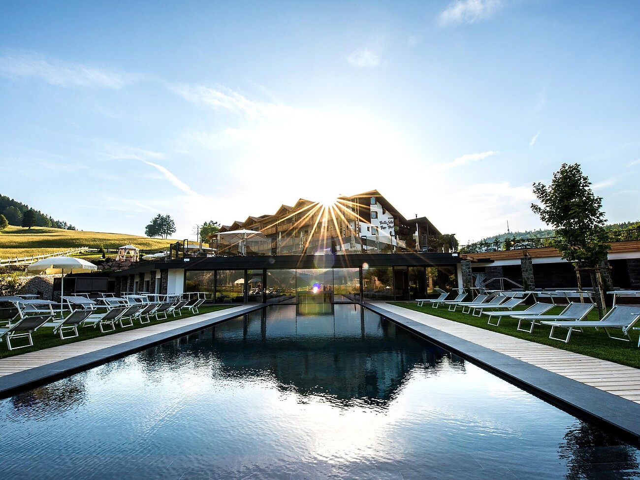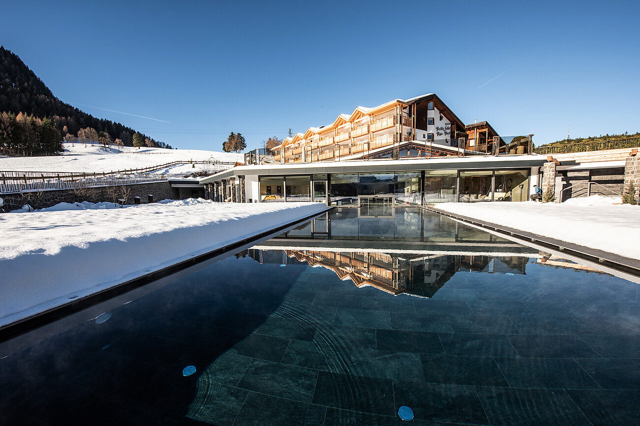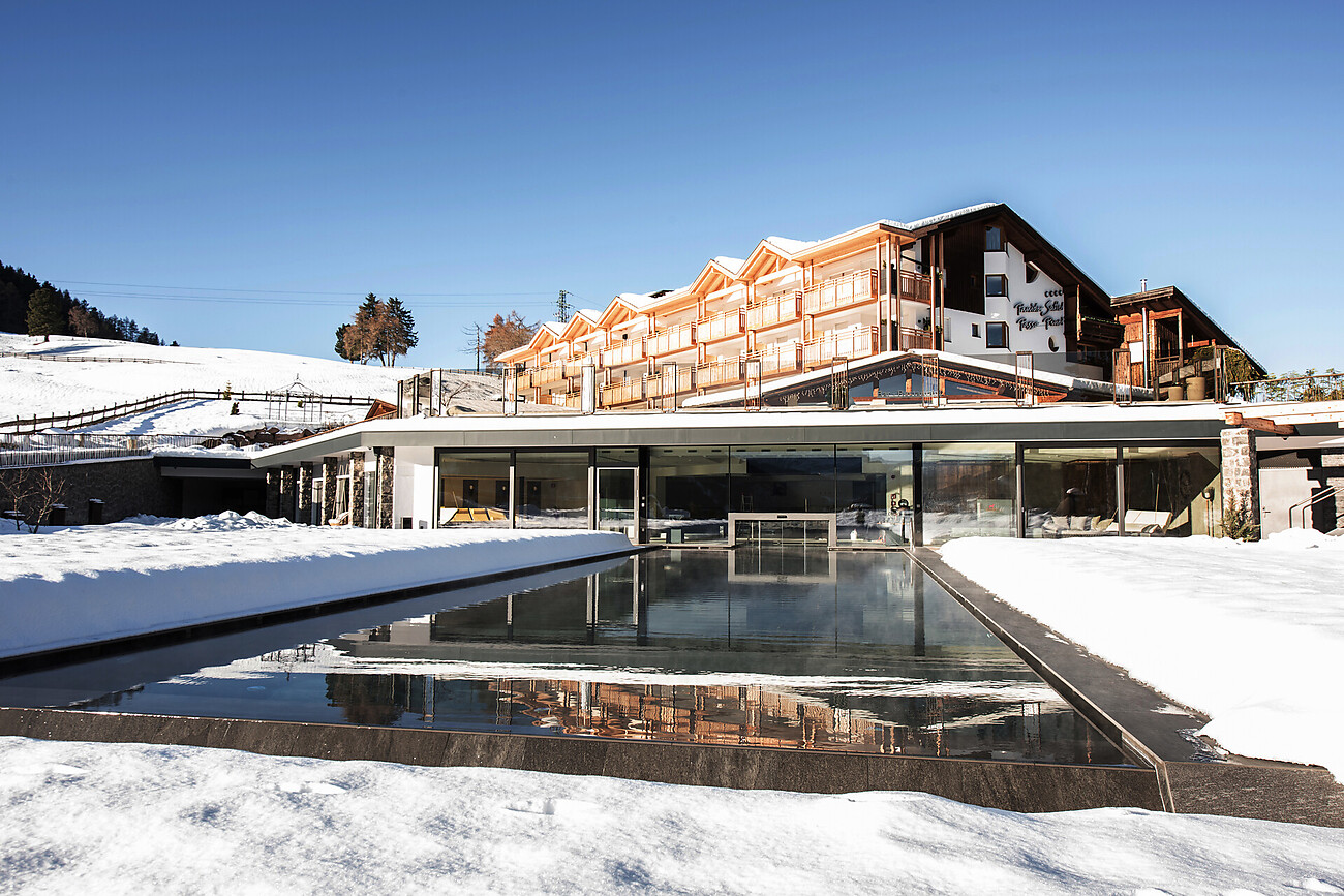 Hotel Pinei is located at 1400 meters above sea level, half-way between two villages: Ortisei, the gem of Val Gardena, and Castelrotto, at the feet of Alpe di Siusi. Our new wellness area is ready for you in May 2019! For our guests: indoor-outdoor heated pool with whirlpool and panoramic view, new saunas with bio-pool, four relaxing rooms, fitness and yoga room.