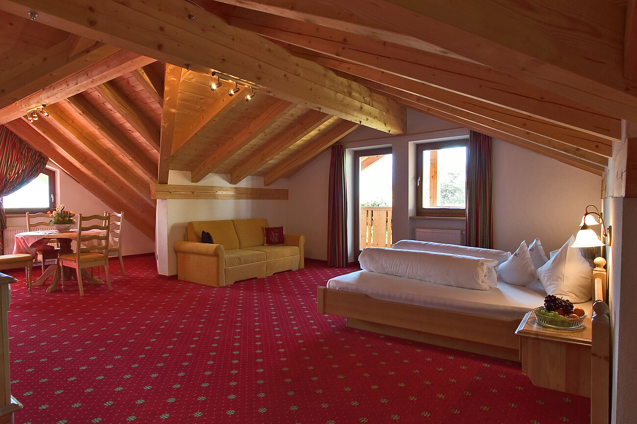 As a family business, we always strive for the well-being of our guests. The property offers a magnificent view of the surrounding mountain panorama and is ideal for relaxing. The chef personally takes care of the culinary wellbeing. There are spacious, rustic rooms, corner rooms and suites, a large sun terrace for sunbathing and relaxing, a wellness area with indoor pool, Finnish and Turkish sauna and solarium.